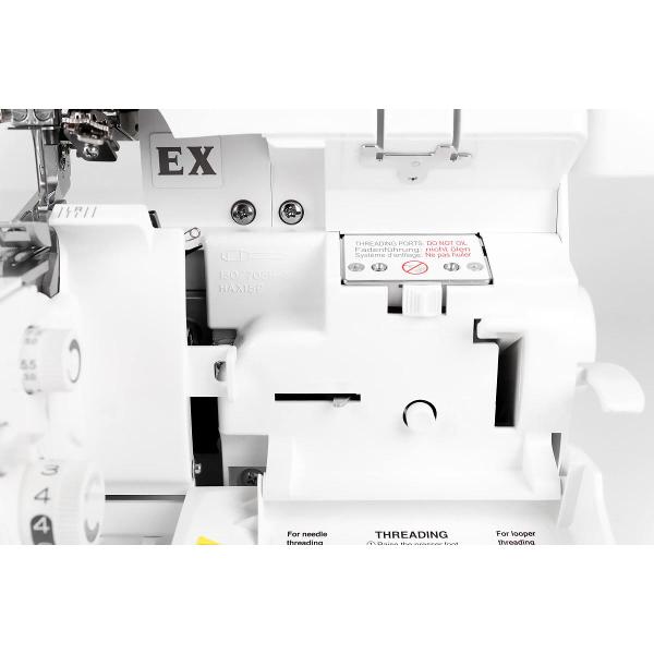 Запатентованная система вертикального положения игл обеспечивает высокое качество строчки и долговечность работы прибора. Прикрепленный конвертер обеспечивает быстрый переход к двухниточному шву. Длина шнура для подключения оверлока к электросети — около 2 м.