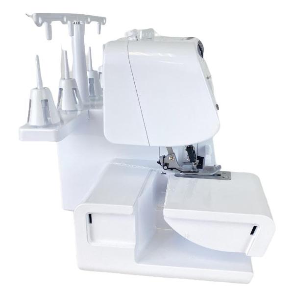 Корпус устройства выполнен из пластика. Встроена яркая светодиодная подсветка рабочей зоны, что позволит заниматься шитьем даже при недостаточном освещении. Потребляемая мощность — 75 Вт. Габариты оверлока: 28х25х28 см, вес — 5 кг.