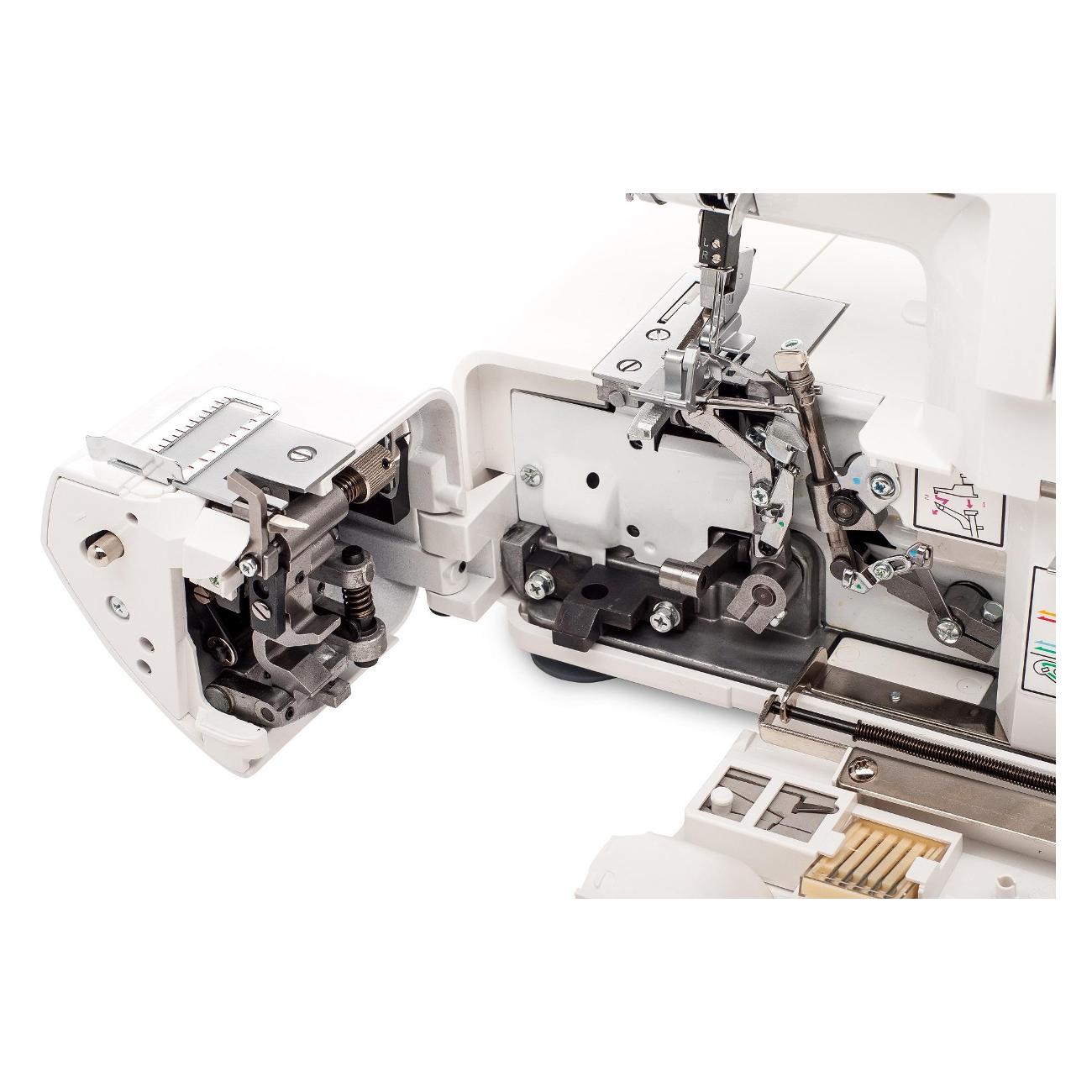 В комплект входит набор игл ELx705, нитеобрезатель, четыре катушкодержателя, две отвертки, масло для смазки и щеточка для чистки. Вся конструкция упакована в удобный чехол. Корпус белого цвета дополнен ручкой для переноски и прорезиненными ножками.