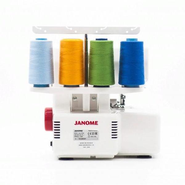 Оверлок Janome HQ-075D выполнен в пластиковом белом корпусе размером 34х31х35 см. Лапка — стандартная, возможно менять величину давления и высоту подъема до 7 мм. Натяжение нити выполняется электромеханическим способом, заправка петлителя происходит вручную. Оверлок выполняет восемь видов швов. Длина стежка — 1-5 мм. Встроена функция отключения верхнего ножа.