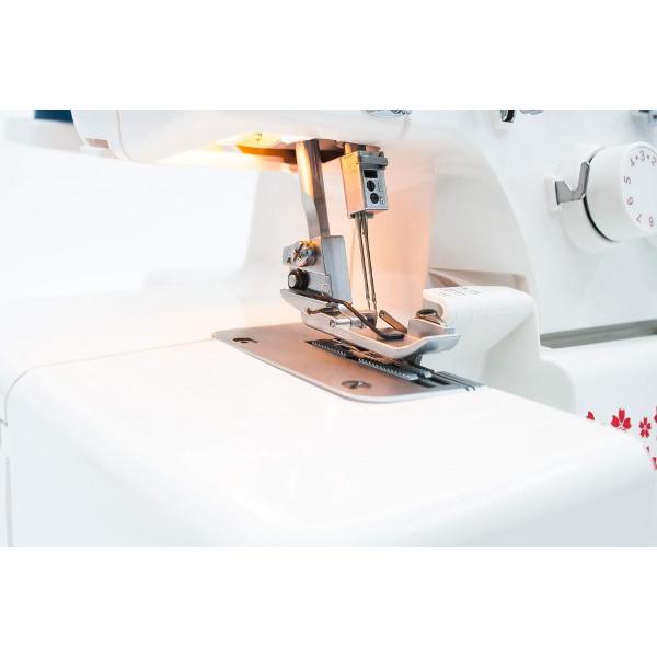 На корпусе предусмотрен нитеобрезатель. Для переноски инструмента установлена специальная ручка. Устойчивость прибора обеспечивают прорезиненные ножки. В комплектацию включены масло для смазки, катушкодержатель, сетка для нитей, набор игл, отвертка, пинцет, кисточка для чистки. Потребляемая мощность — 135 Вт, подключение к сети осуществляется с помощью шнура протяженностью 1,25 м. Вес — 8 кг.