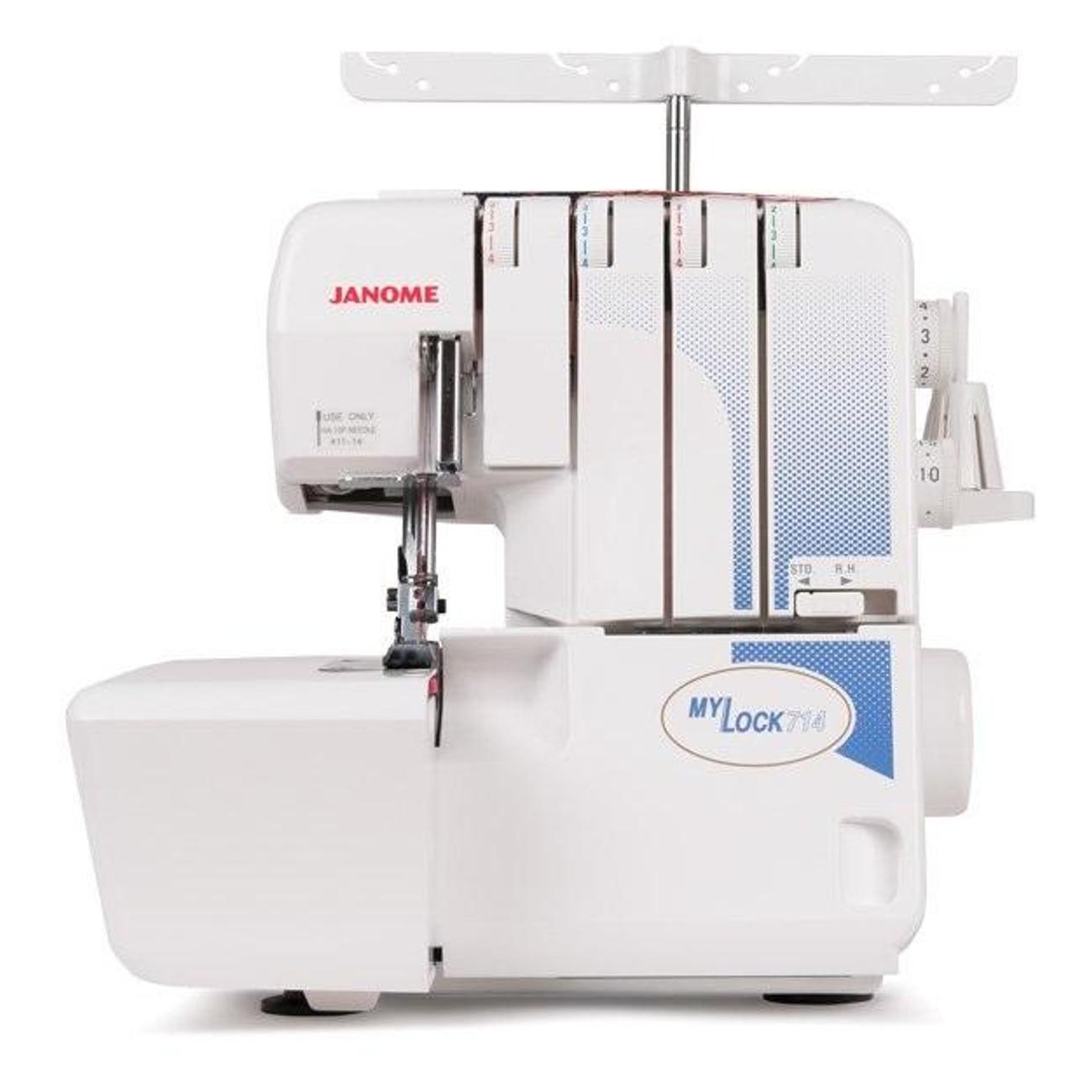 Оверлок Janome Mylock 714 белого цвета позволяет варьировать скорость шитья до 1300 стежков в минуту. Петлитель заправляется автоматически. Тип — 2/3/4ниточный. Давление лапки на материал можно регулировать. Длина стежка составляет от 1 до 5 мм. Параметры выставляются с помощью переключателей и поворотных ручек на корпусе. Габариты модели — 32х31х34 см. Вес изделия — 7,8 кг. Присутствует светодиодное освещение рабочей зоны. Корпус сделан из ударопрочного пластика. В комплекте идут чехол для хранения, мусоросборник, иглы, нитевдеватель, масло. Мощность прибора — 105 Вт.