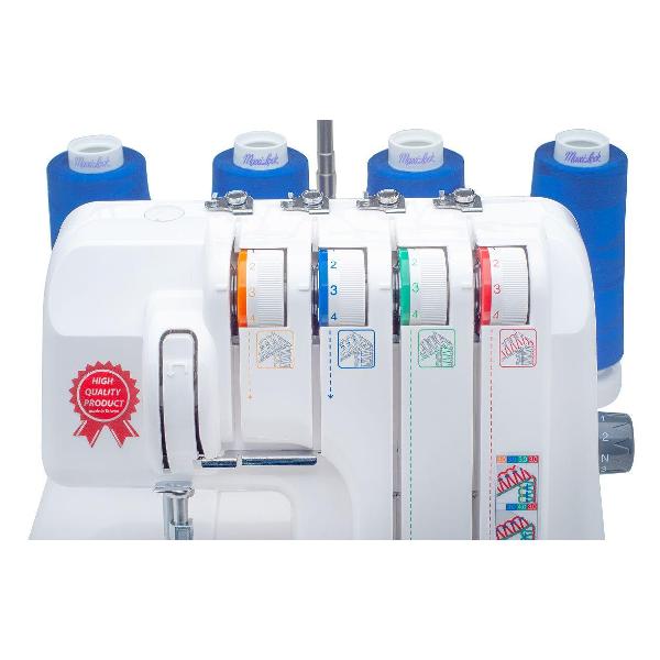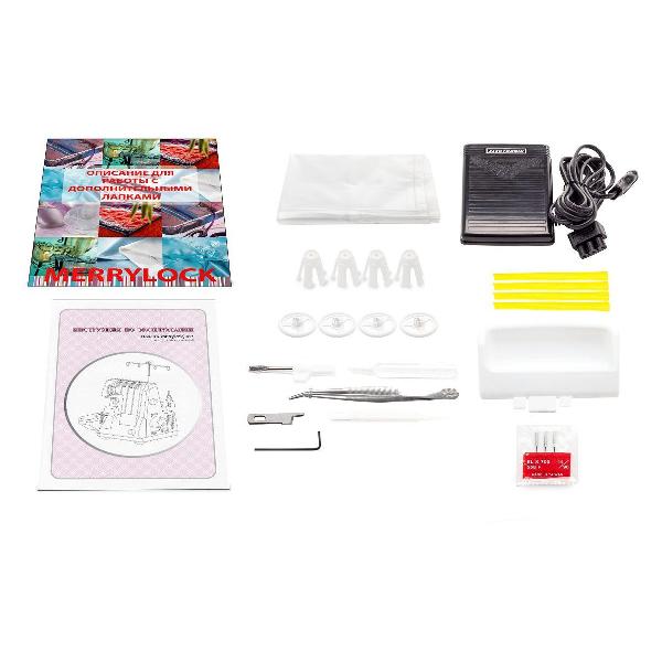 Электромеханическое управление оверлоком интуитивно понятное и простое. Максимальная высота подъема лапки составляет 6 мм — уровень ее давления можно настраивать с учетом типа, плотности и толщины ткани. Длина стежка регулируется в пределах 1-4 мм. Поддерживается переключение на ролевой шов, который необходим для обработки изделий в том случае, если подгибка выглядит недостаточно хорошо. Для освещения рабочей зоны оверлок оснащен лампой накаливания. Корпус выполнен из прочного и устойчивого к механическим повреждениям пластика. Предусмотрена ручка для переноски. Прорезиненные ножки обеспечивают устройству устойчивость в процессе работы.
