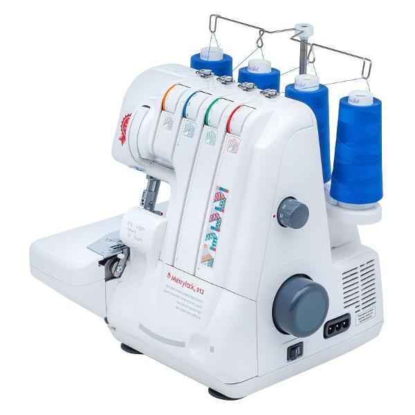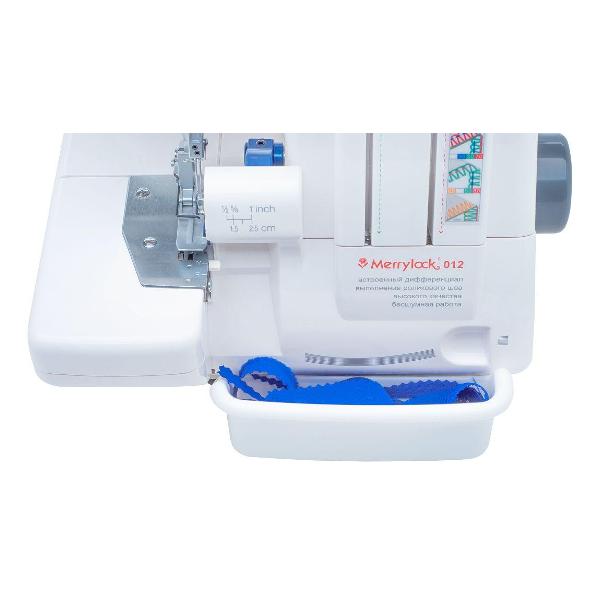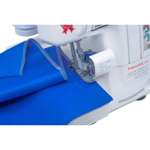Оверлок Merrylock 012 обладает широким функционалом, поддерживающим выполнение до 12 швейных операций. Ширину обрезки ткани можно регулировать, что позволяет настроить устройство под определенную задачу. Специальный отсек упрощает хранение аксессуаров и позволяет всегда держать их под рукой. Петля заправляется вручную. Тип используемых игл — ELx705. Предусмотрена функция отключения верхнего ножа. Натяжение нити регулируется вручную. Потребляемая мощность модели не превышает 105 Вт. Для подключения к питанию используется 1,4-метровый кабель.