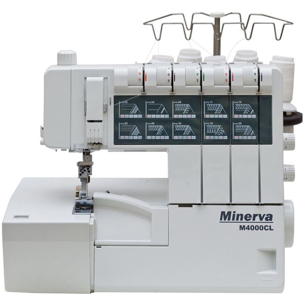 Оверлок Minerva M4000CL снабжён плоскошовным механизмом, увеличивающим количество функций. Он предлагает 20 видов операций – в том числе цепную строчку. Вы также можете выбирать режим ролевого и подрубного шва без замены инструментов.