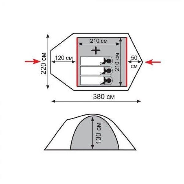 Два тамбура. Один большой 120 см, в нем можно готовить еду на туристической горелке если на улице дождь.