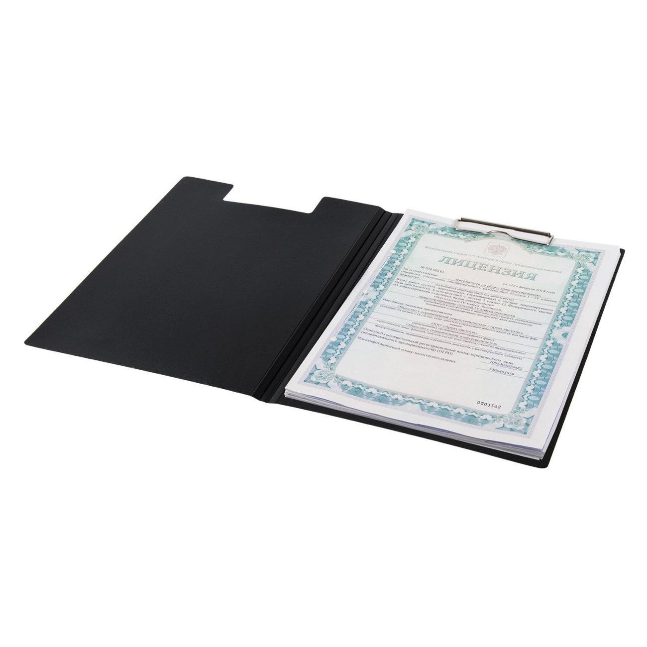 Папка-планшет формата А4 с верхним прижимом и крышкой фиксирует до 90 листов. Изготовлена из жесткого полипропилена толщиной 0,9 мм, что позволяет комфортно делать записи на весу. Металлический прижим обеспечивает плотное прилегание документов, а верхняя крышка надежно защищает ваши документы от пыли, влаги и других негативных факторов внешней среды.