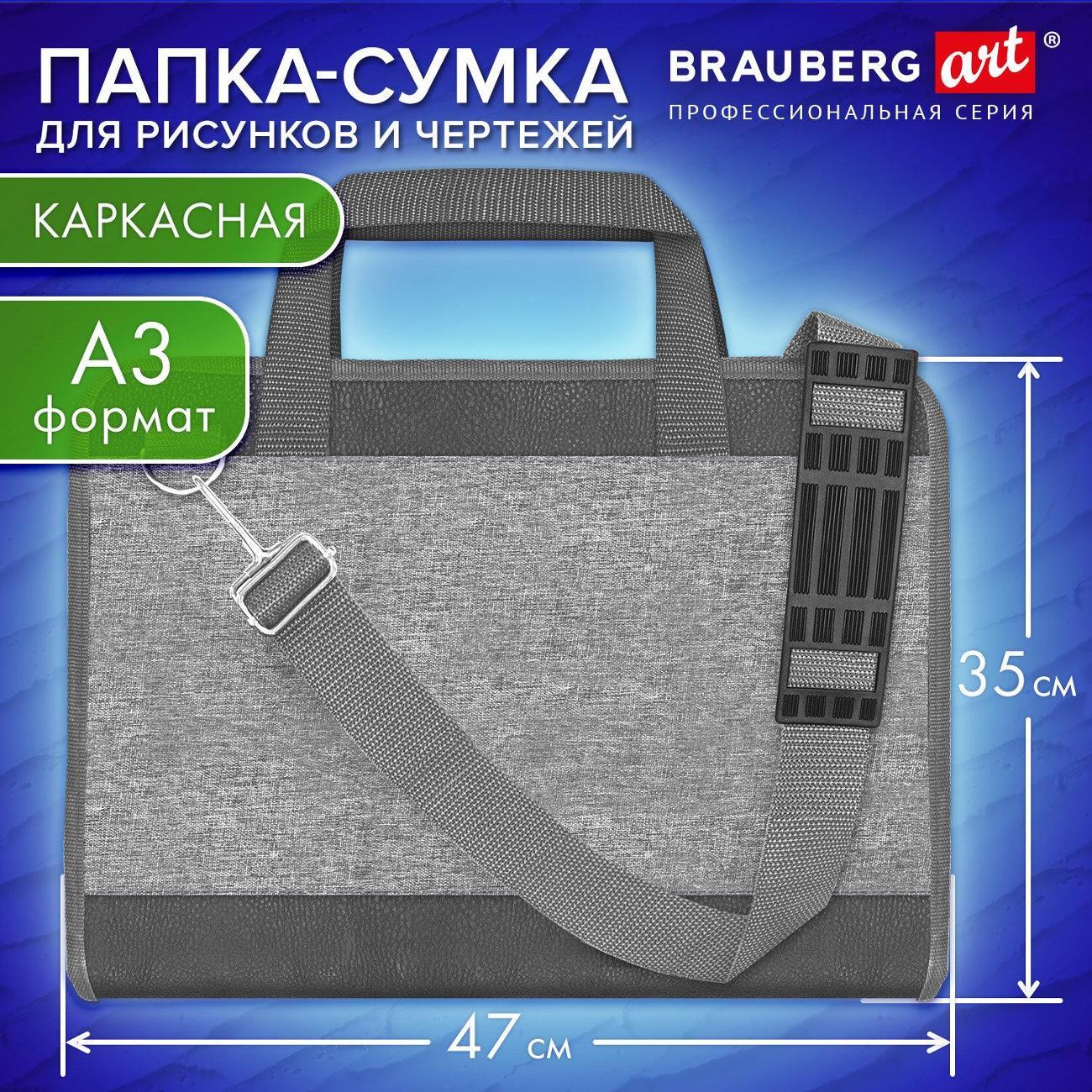 Папка-сумка для рисунков и чертежей BRAUBERG ART CLASSIC формата А3 предназначена для хранения, перевозки и защиты рисунков, эскизов, чертежей, альбомов, листов бумаги и других художественных материалов.