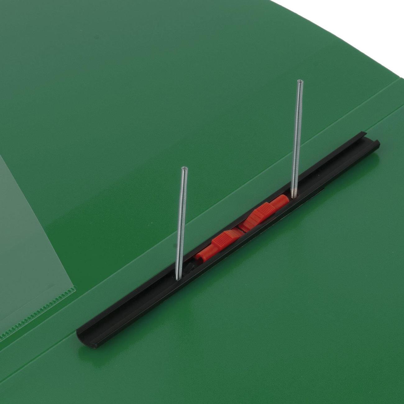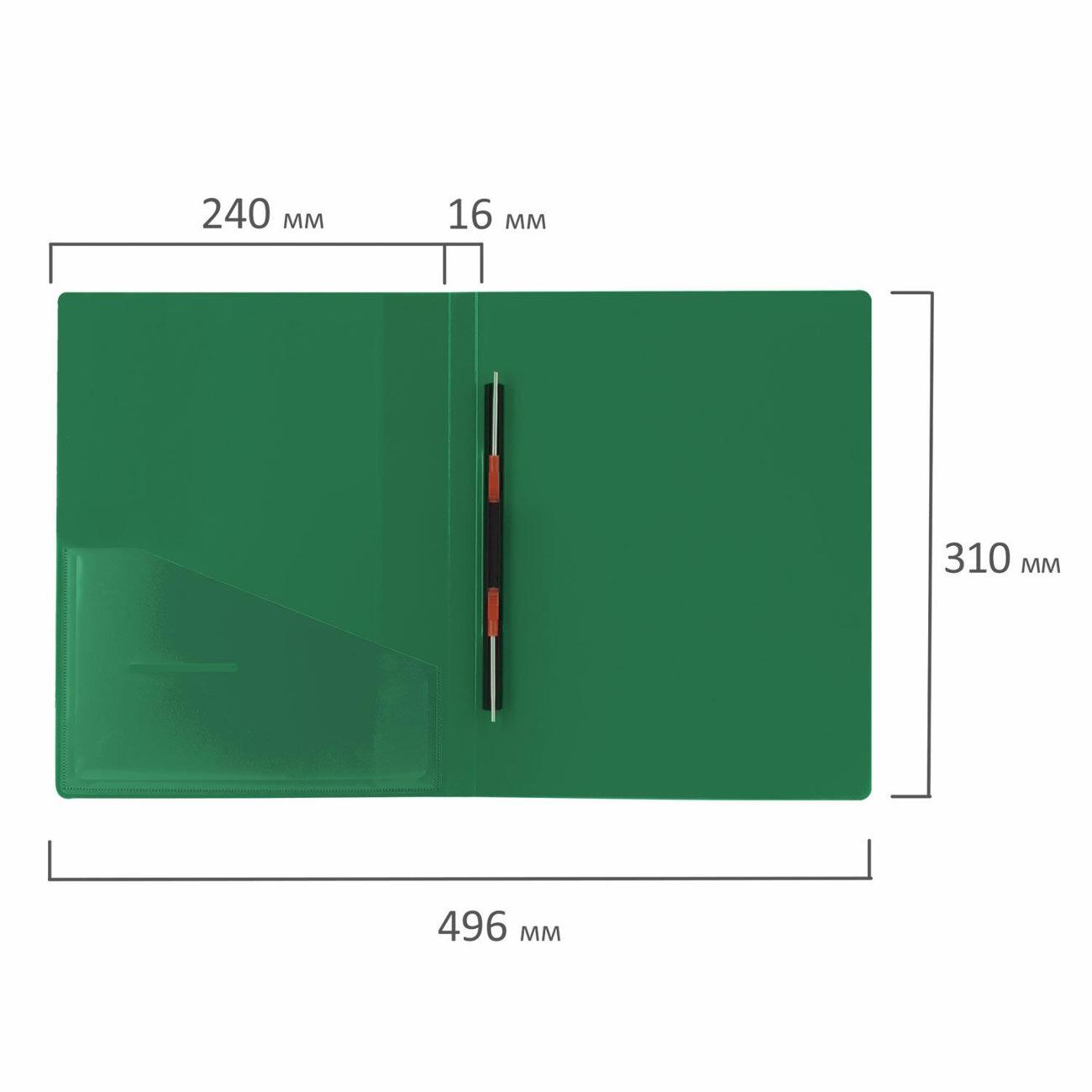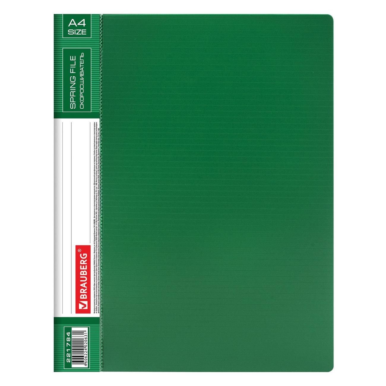 Изготовлена из высококачественного пластика зеленого цвета толщиной 0,7 мм с оригинальной линейной фактурой. Обеспечивает хранение до 100 листов формата А4. Металлический скоросшиватель с пружинным механизмом обеспечит надежную фиксацию документов. Кроме того, папка снабжена прозрачным внутренним карманом. Для идентификации имеется сменный бумажный корешок. Поставляется в индивидуальной упаковке.