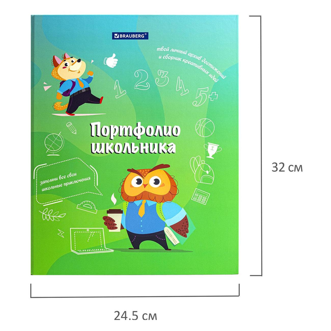 Портфолио школьника BRAUBERG на кольцах А4, 20 файлов. Изготовлено из качественного твёрдого картона. Актуальный стильный дизайн обложки с матовой ламинацией. Оснащено 4 металлическими кольцами и комплектом из 20 файлов плотностью 60 мкм. Полезный диаметр колец – 25 мм. Подходит для хранения грамот, дипломов, фотографий и других достижений учащихся.