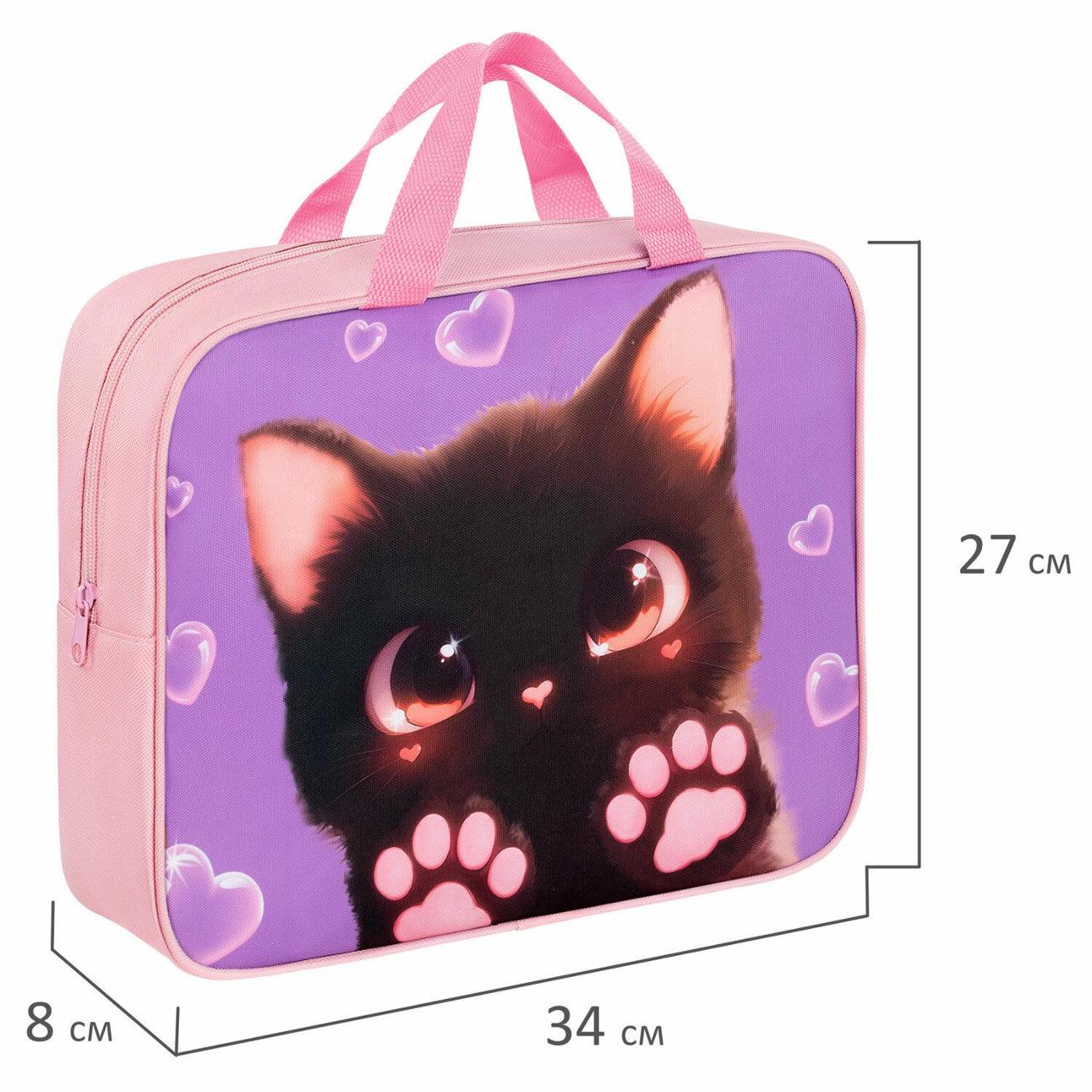 Папка для тетрадей формата А4 с ручками для переноски изготовлена из прочного полиэстера. Внутри одно отделение, застегивается на молнию по верхнему краю.