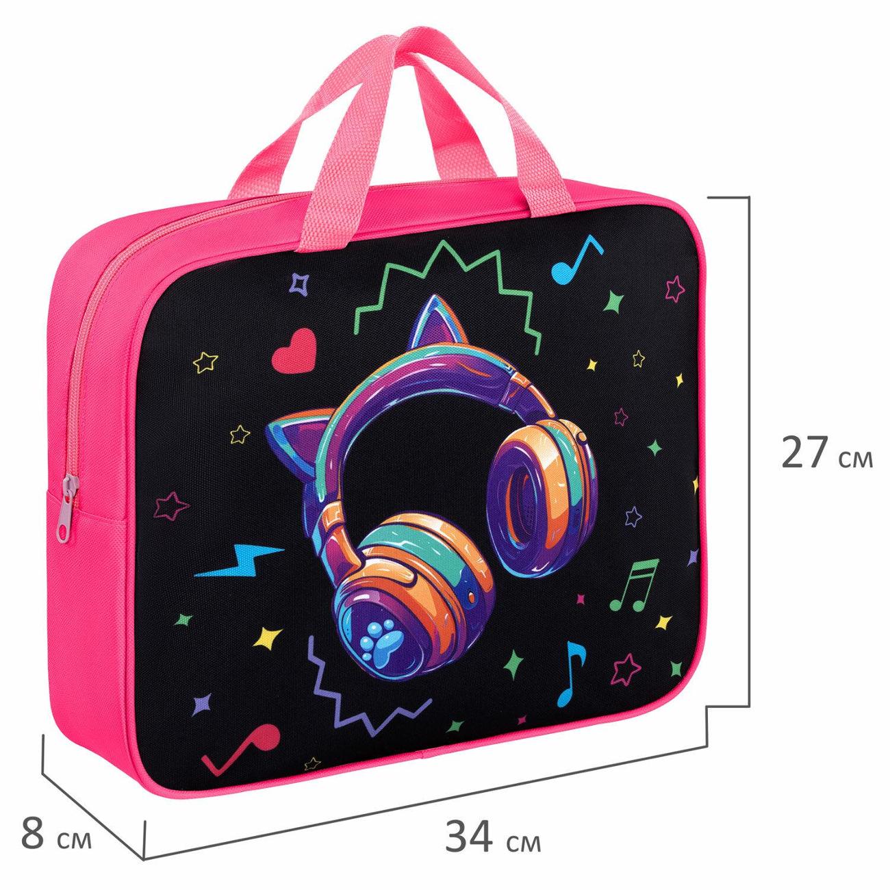 Папка для тетрадей формата А4 с ручками для переноски изготовлена из прочного полиэстера. Внутри одно отделение, застегивается на молнию по верхнему краю.