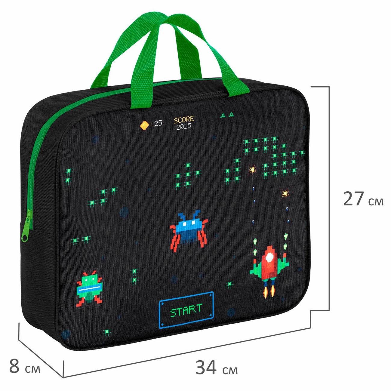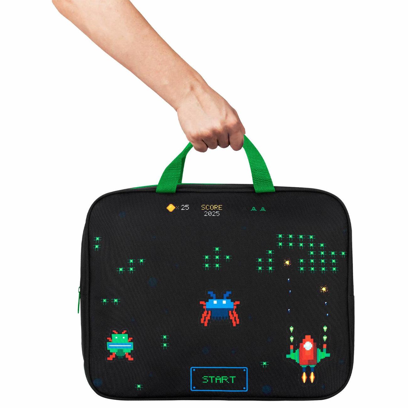 Папка для тетрадей формата А4 с ручками для переноски изготовлена из прочного полиэстера. Внутри одно отделение, застегивается на молнию по верхнему краю.