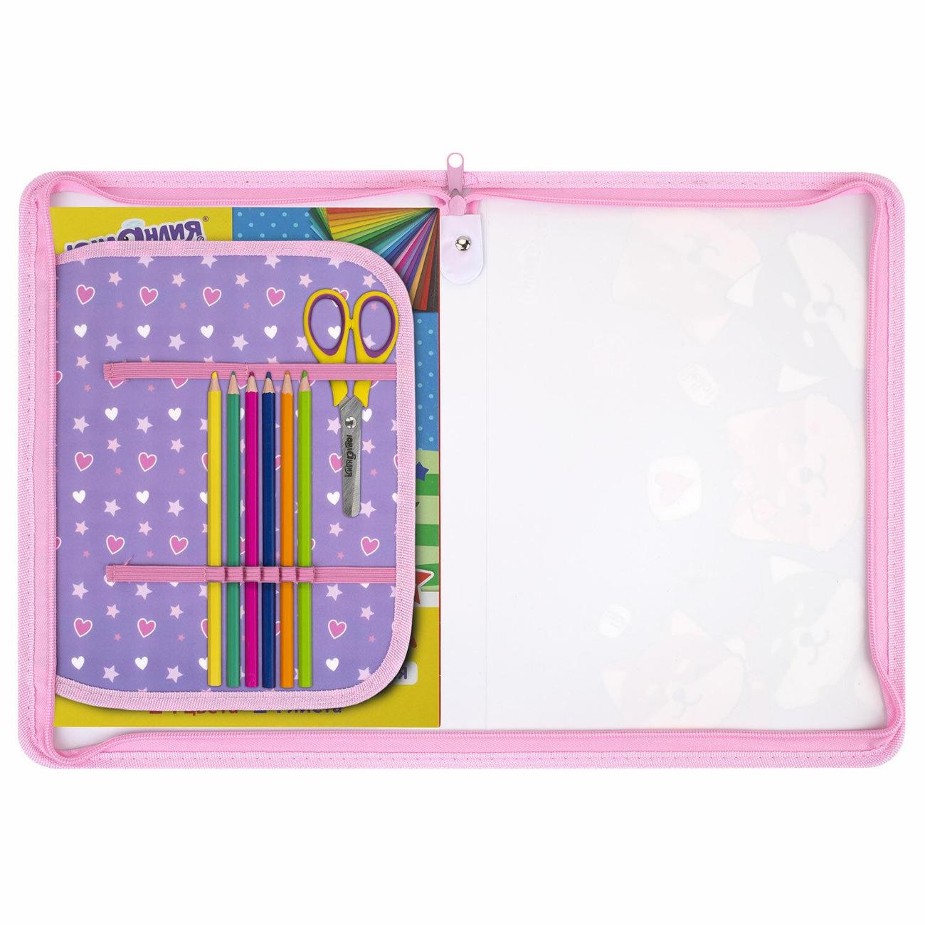 Папка на молнии выполнена из прочного пластика, что обеспечивает долговечность и надежность. Двухсторонняя яркая и красочная печать коллекционного дизайна. Внутри одно основное отделение и откидная планка с резинками-органайзером для канцелярии. Размер папки - 330х230 мм, ширина - 25 мм. Застежка-молния, расположенная с трех сторон папки, обеспечивает быстрый доступ к содержимому. Идеально подходит для транспортировки и хранения канцелярских принадлежностей, тетрадей, учебников и пособий формата А4.