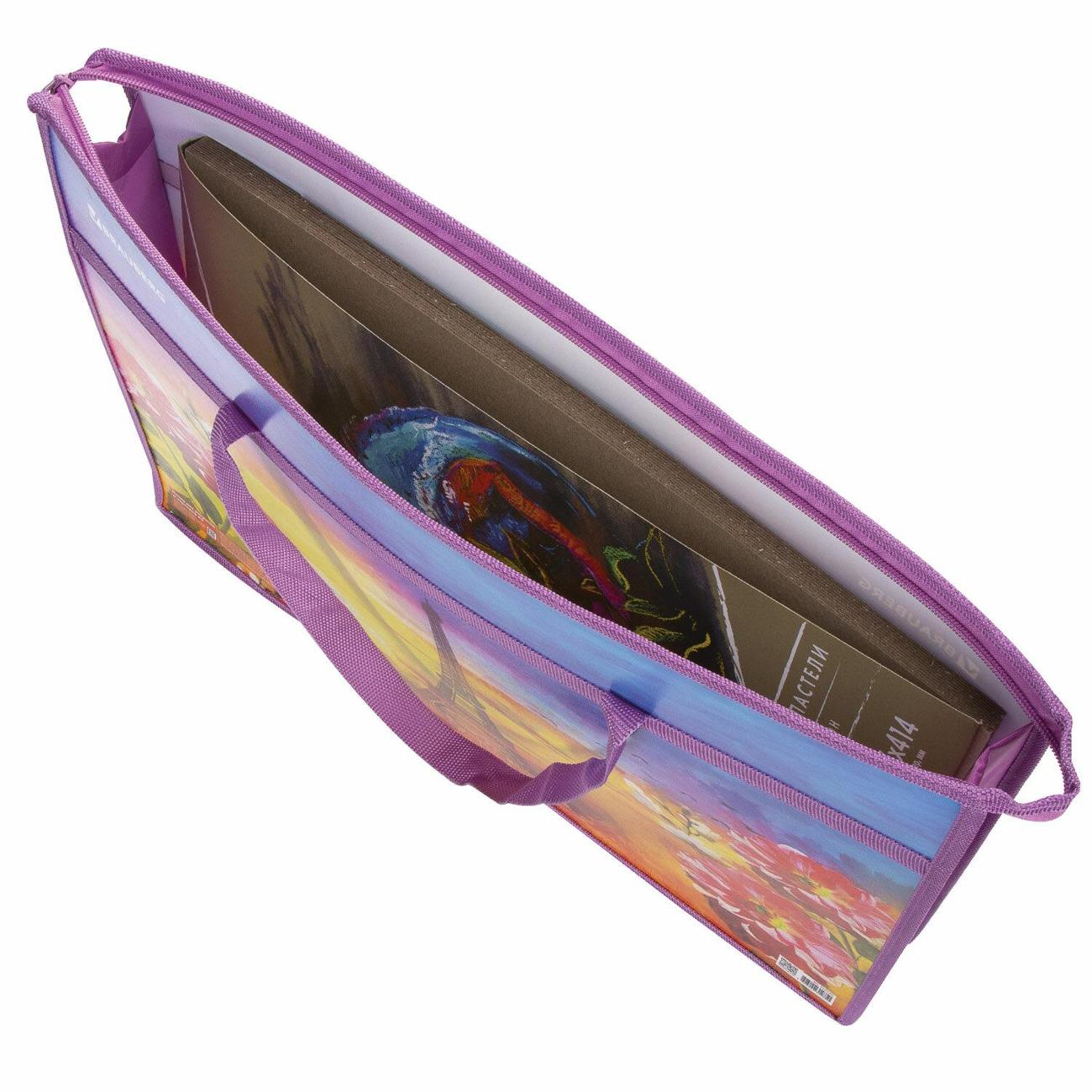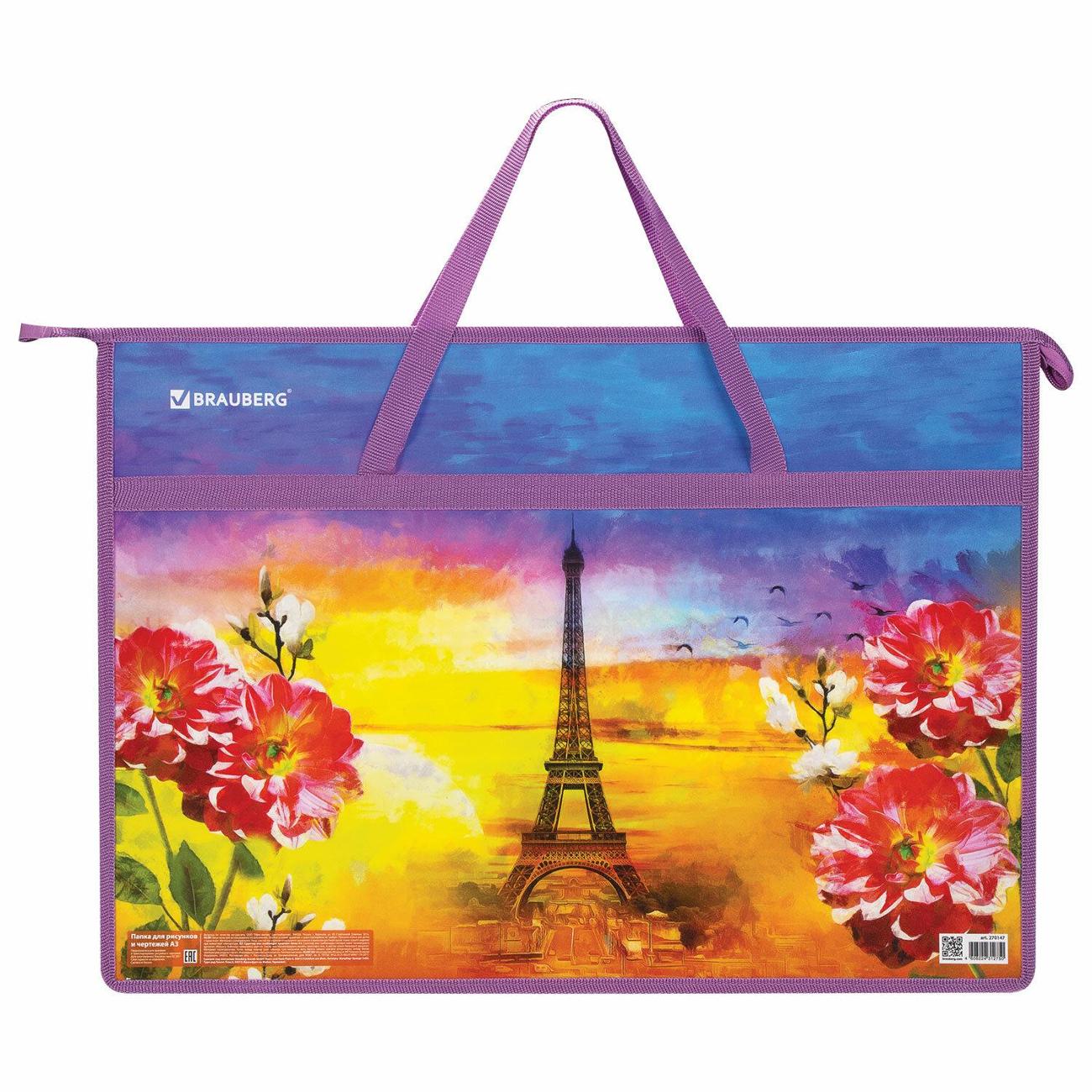 Практичная папка на молнии с ручками защитит чертежи, рисунки и другие художественные изображения формата А3 от смятия и повреждений. Изготовлена из износостойкого пластика, боковины выполнены из прочного полиэстера. Яркая и чёткая печать дизайна нанесена с двух сторон. Размер папки – 340х465 мм, ширина – 50 мм. Широкий формат позволяет разместить внутри канцелярские принадлежности для творчества. Папка оснащена удобной застёжкой-молнией сверху.