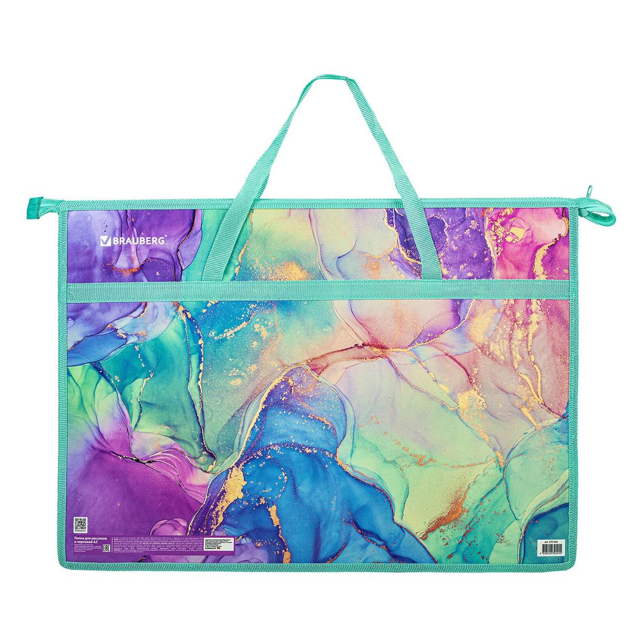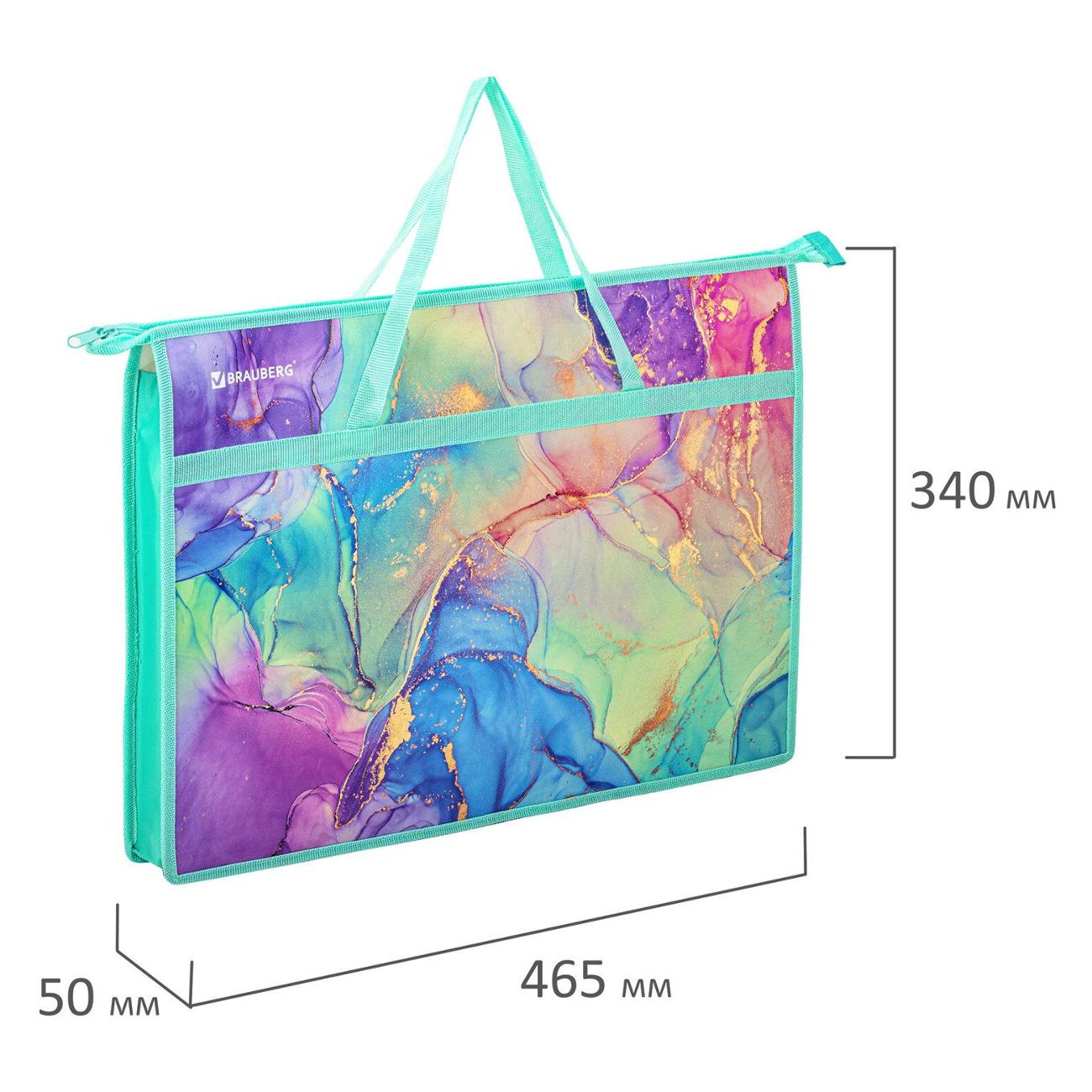 Практичная папка на молнии с ручками защитит чертежи, рисунки и другие художественные изображения формата А3 от смятия и повреждений. Изготовлена из износостойкого пластика, боковины выполнены из прочного полиэстера. Яркая и чёткая печать дизайна нанесена с двух сторон. Размер папки – 340х465 мм, ширина – 50 мм. Широкий формат позволяет разместить внутри канцелярские принадлежности для творчества. Папка оснащена удобной застёжкой-молнией сверху.