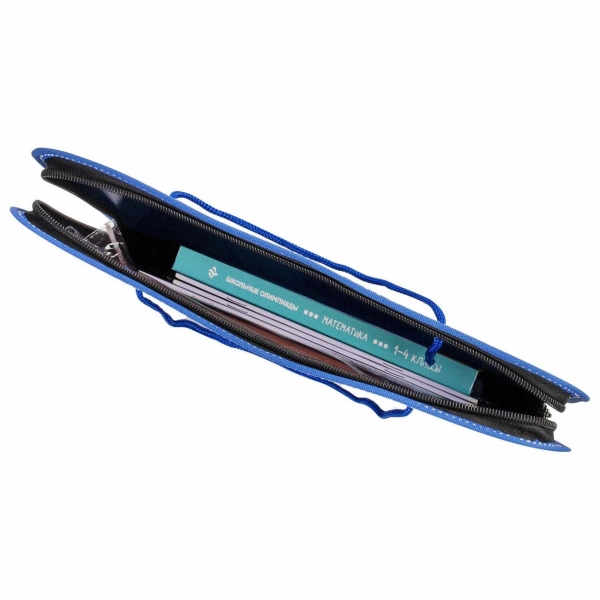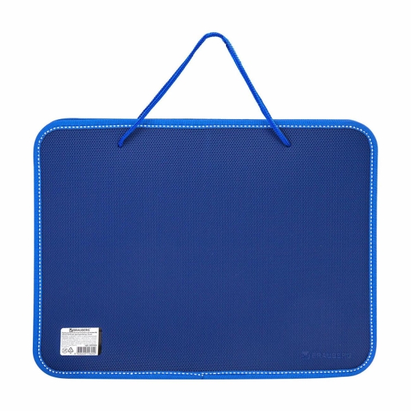 Изготовлена из прочного непрозрачного пластика толщиной 1 мм. Формат папки А4 (350х270х45 мм). Имеет одно отделение. Надежный замок-молния защищает документы от механических повреждений, а также пыли и влаги. Веревочные ручки. Выполнена в синем цвете с фактурой под "бисер".