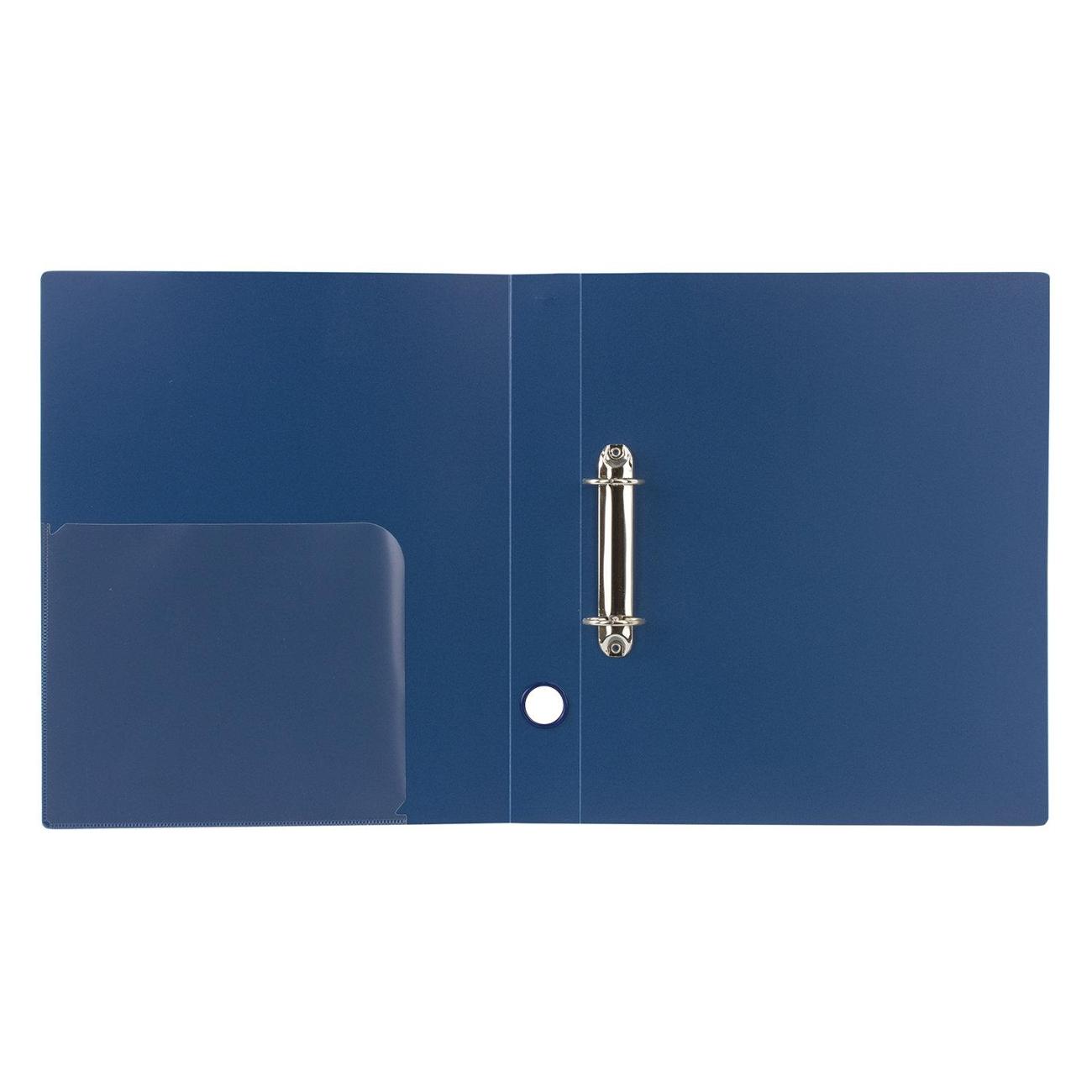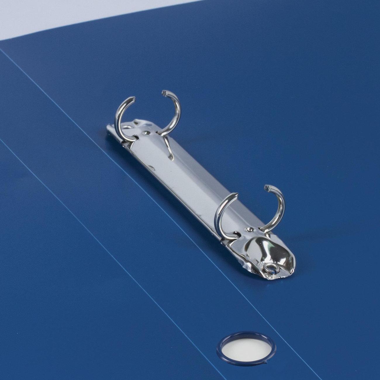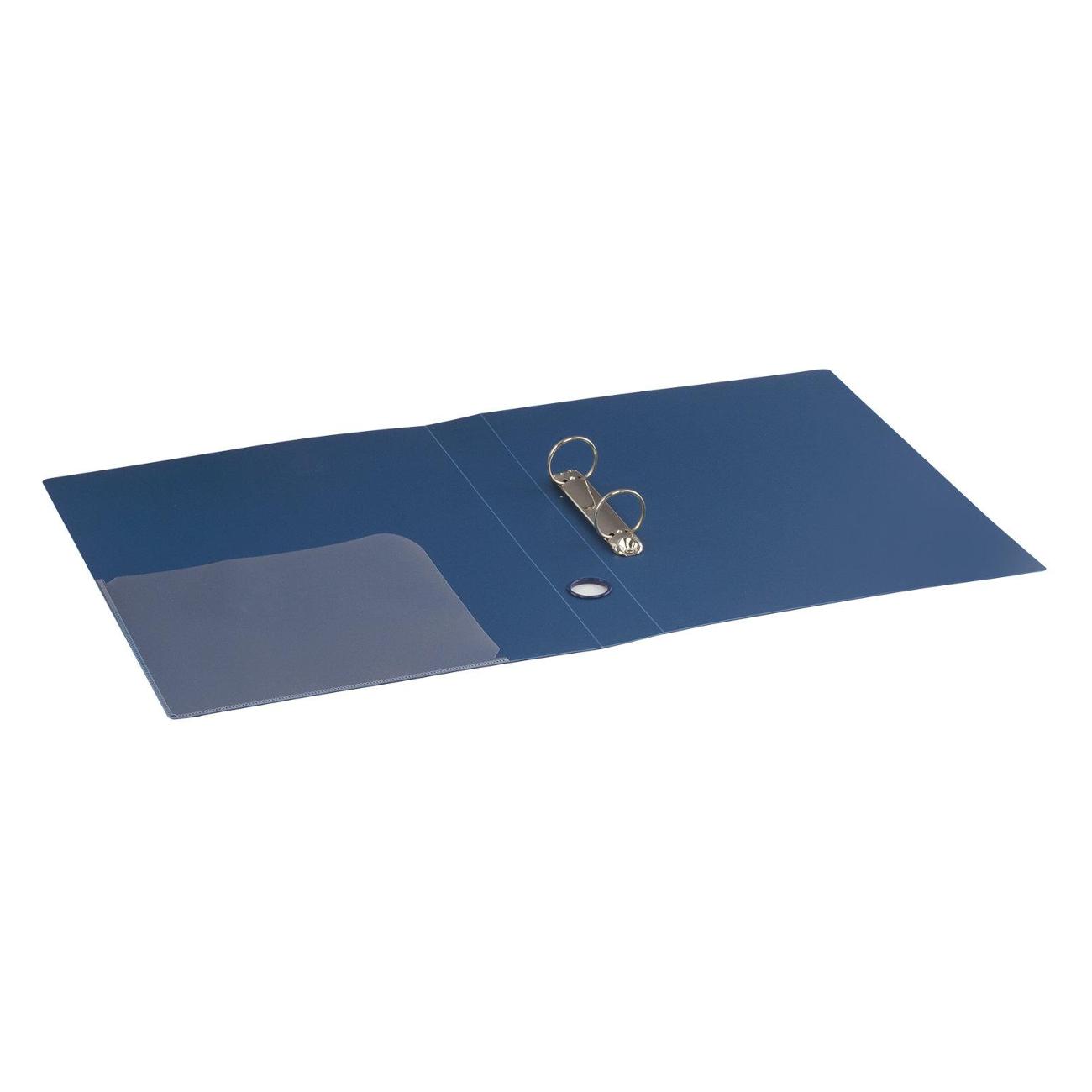 Папка стандартного формата А4 вмещает до 300 листов. Изготовлена из высококачественного полипропилена толщиной 0,9 мм со стандартной фактурой. Допускается влажная обработка поверхности. Внутренняя сторона обложки снабжена прозрачным карманом. Для идентификации имеется бумажный корешок. Ширина корешка составляет 40 мм. Папка оснащена двумя кольцами, которые обеспечивают надежное хранение документов. В неё можно вставить файлы или проколотые дыроколом листы и, при необходимости, заменить их на другие. Каждая папка упакована в индивидуальный пакет.