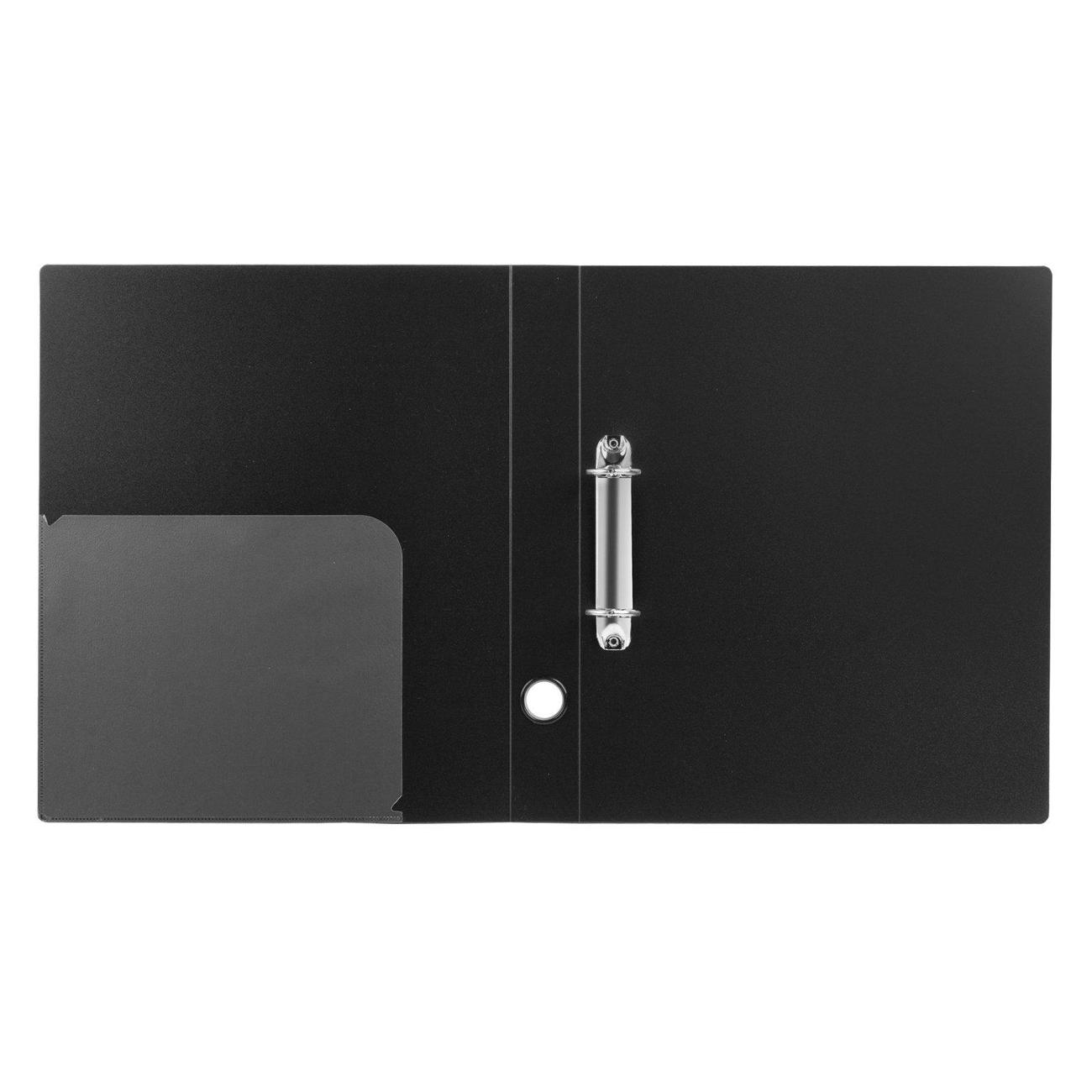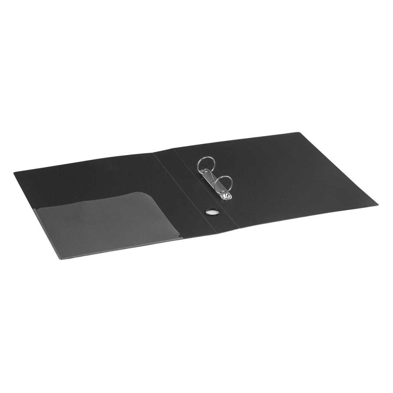 Папка стандартного формата А4 вмещает до 300 листов. Изготовлена из высококачественного полипропилена толщиной 0,9 мм со стандартной фактурой. Допускается влажная обработка поверхности. Внутренняя сторона обложки снабжена прозрачным карманом. Для идентификации имеется бумажный корешок. Ширина корешка составляет 40 мм. Папка оснащена двумя кольцами, которые обеспечивают надежное хранение документов. В неё можно вставить файлы или проколотые дыроколом листы и, при необходимости, заменить их на другие. Каждая папка упакована в индивидуальный пакет.