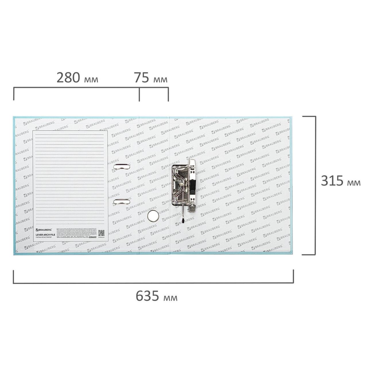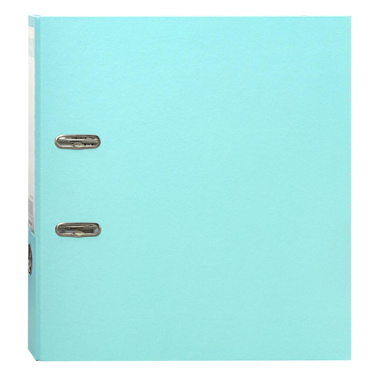 Папка формата А4 с вертикальной ориентацией изготовлена из высококачественного износоустойчивого картона с бумажным покрытием мятного цвета и матовой ламинацией. Ширина корешка в 75 мм позволяет разместить до 500 листов. Прорези для колец на внешней крышке позволяют оставаться папке закрытой даже при большом количестве бумаг, а надежный арочный механизм легко справляется с ежедневными нагрузками. Корешок папки снабжен этикеткой для маркировки содержимого, что позволяет структурировать информацию.
