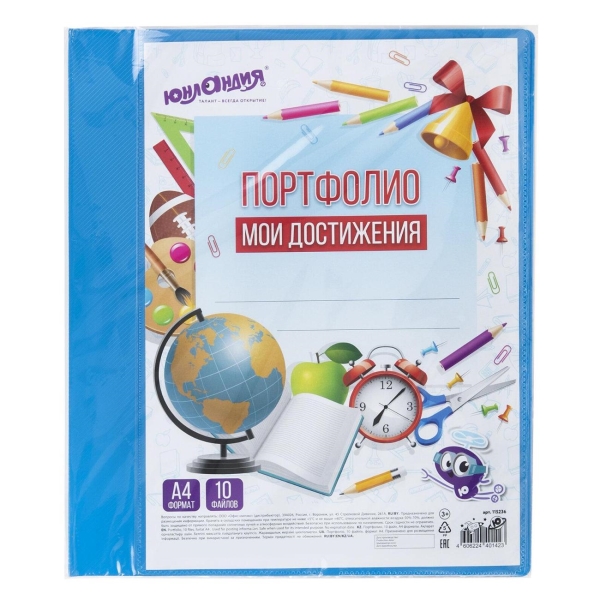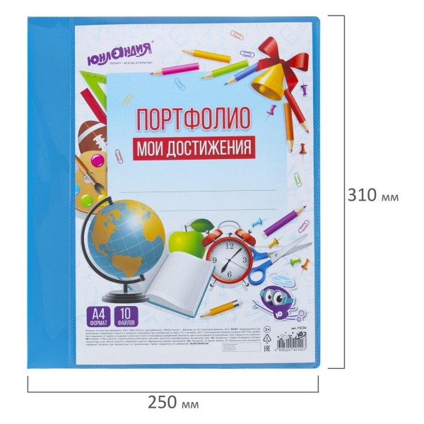 Папка для портфолио оснащена 2 металлическими кольцами, прозрачным карманом для персональной обложки и комплектом из 10 файлов плотностью 25 мкм. Полезный диаметр колец - 20 мм. Изготовлена из качественного жесткого пластика. Фактура папки: диагональ. Цвет: синий. Индивидуальная упаковка: пакет с клейким краем.