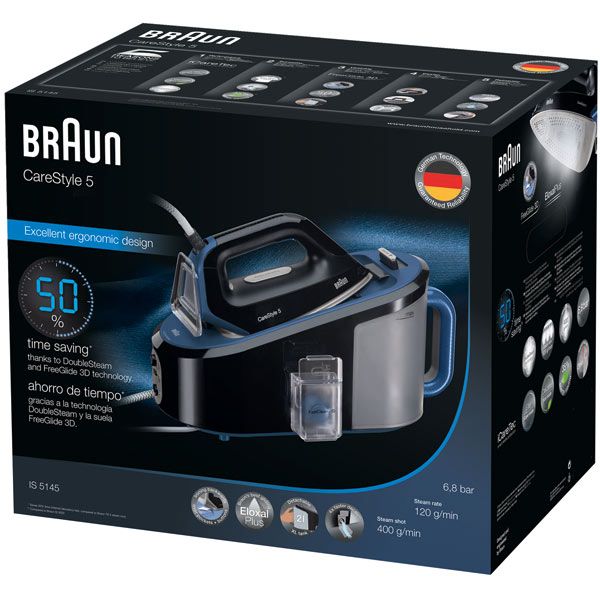 С парогенератором Braun 12830010-IS5145BK вы будете тратить на глажение значительно меньше времени и сил. Благодаря высокой мощности 2400 Вт уже через 2 минуты после включения он будет готов к работе, а пар, подающийся под давлением 6,8 бара, справится с самыми упорными складками и заломами всего за один проход. Прибор успешно работает даже с тканью, сложенной в несколько слоёв!