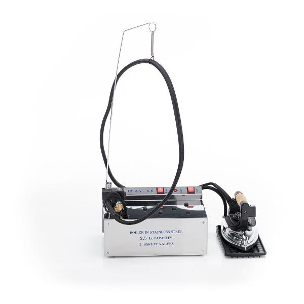 Парогенератор Lelit PS 05/B подходит для домашнего использования или применения в ателье, отеле, на швейных предприятиях. Объем — 2,5 л, в комплект входит утюг. Генерирует сухой пар, с помощью которого можно быстро гладить вещи практически из любых видов тканей в большом количестве. Нагревательный элемент выполнен из меди, корпус и бойлер стальные. Индикаторы на корпусе позволяют контролировать количество воды и готовность прибора к работе.