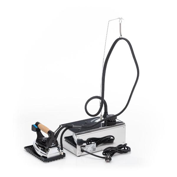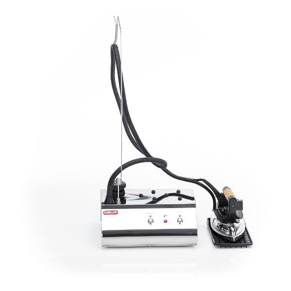 Парогенератор Lelit PS 25 полностью безопасен в работе благодаря наличию четырех защитных систем. Бойлер емкостью 2,5 л выполнен из высококачественной стали. Работать с паром без перерыва возможно в течение 2-2,5 часов. На ручке устройства сделано пробковое покрытие, благодаря которому хват становится комфортным. Материал исполнения подошвы утюга — алюминий. Подошва хорошо скользит по поверхности и без проблем очищается от загрязнений. Для управления используются кнопки с контрольной индикацией. В комплект входит воронка, термоустойчивый коврик и фиксатор для шланга.