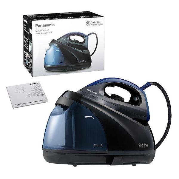 Парогенератор Panasonic NI-GT200ATW представлен в корпусе синего цвета. Прибор работает от электрической сети напряжением 220-240 В и потребляет 2400 Вт. Настроек постоянной подачи пара у модели две, максимум составляет 120 г мин. Предусмотрен паровой удар силой 600 г/мин. Максимальное давление — 5,5 Бар.