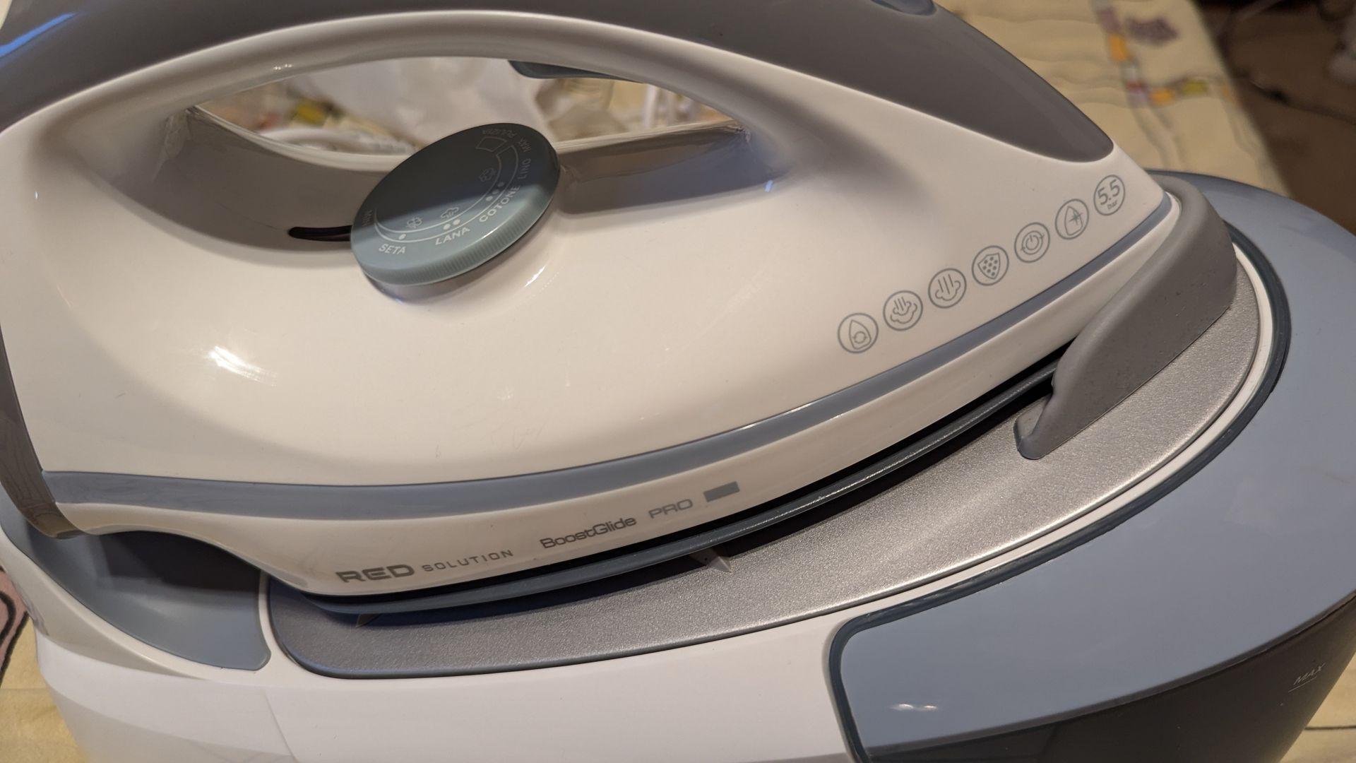 3. Экземпляр, который купил я, имеет на колёсике регулировки температуры на утюге надписи на итальянском языке. Получается, что партия делалась для Италии (а где ещё итальянский?), итальянцы по какой-то причине не взяли и партию отдали российской компании РЭД, которая продаёт на нашем рынке контрактно изготовленную в Китае бытовую технику под брендом RED Solution. Точно также, как это делают многие иных российских дистрибуторов контрактной бытовой техники.