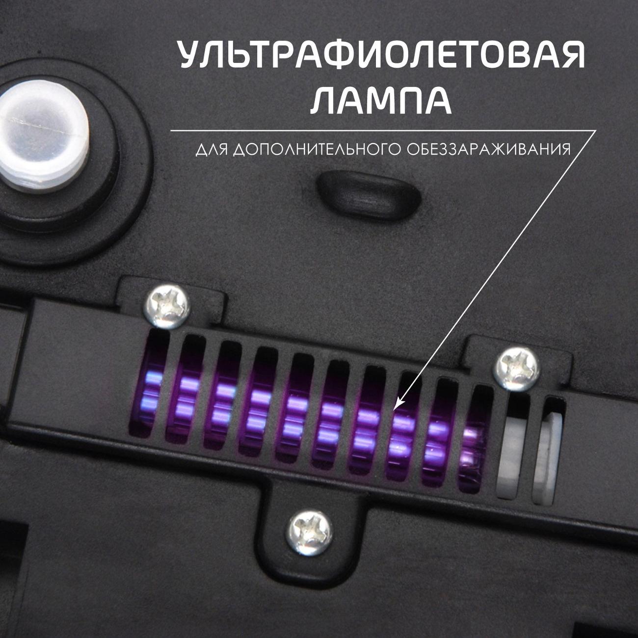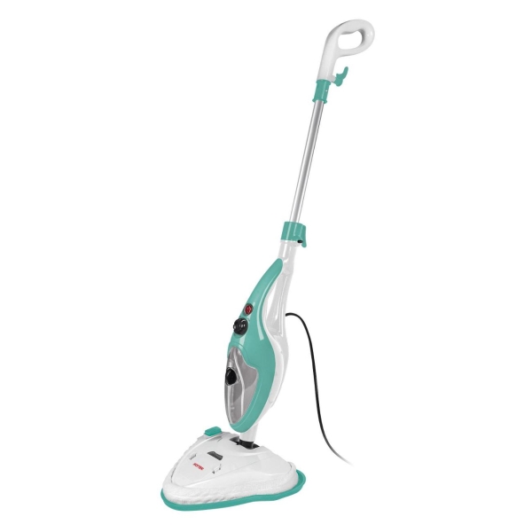 Пароочиститель Hotter 8020 в корпусе бело-зеленой расцветки оснащен ультрафиолетовой лампой, которая убивает болезнетворные микробы в окружающем пространстве. Прибор подает пар температурой 110°C-140°C, что обеспечивает дополнительную дезинфекцию. Пароочиститель потребляет 1500 Вт электроэнергии. Объем резервуара для воды составляет 450 мл.