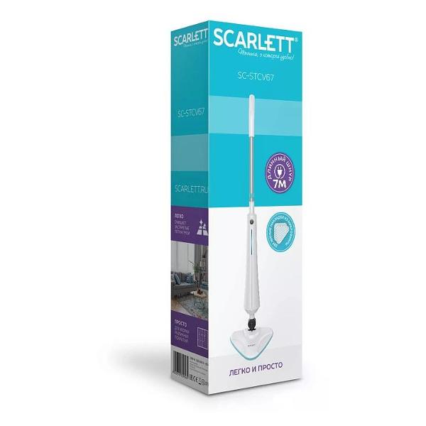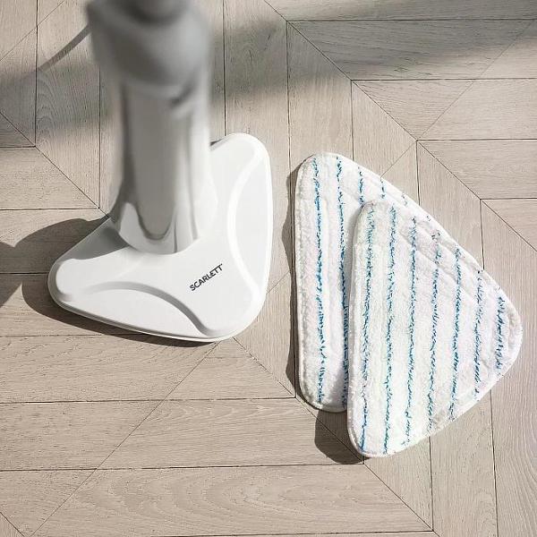Пароочиститель Scarlett SC-STCV67 разогревается за 25 секунд и подает пар под давлением в 1,5 бар. Такая обработка легко удаляет даже застарелые загрязнения на любом напольном покрытии, дезинфицирует и убирает неприятные запахи. Время непрерывной работы составляет около 15 минут, насадка из микрофибры впитывает влагу и загрязнения, не оставляя разводов.