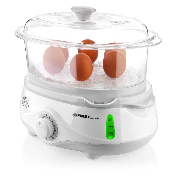Пароварка First FA-5100-2 серого цвета потребляет 1 кВт. Корпус изготовлен из ABS-пластика. Три яруса. Объем резервуара для воды — 1 л. Механический тип управления.