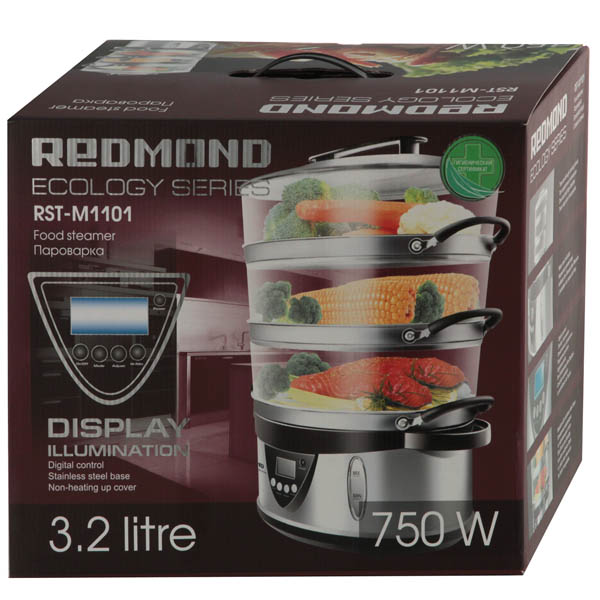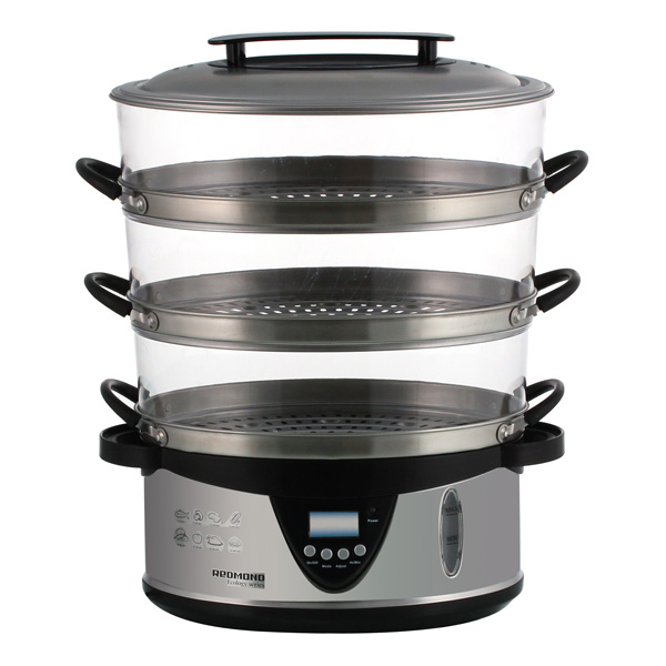 Пароварка REDMOND RST-M1101 позволит вам ввести в свой пищевой рацион разнообразные блюда, приготовленные на пару, а значит, возможность вести здоровый образ жизни и всегда быть в отличной форме. Пароварка сведет к минимуму количество холестерина, который в изобилии присутствует в пище, приготовленной традиционным способом. Теперь чтобы создать аппетитное блюдо, не нужно использовать растительные и животные жиры. А это тем более актуально для людей, придерживающихся диеты. Ваша семья начнет ценить полезную пищу, ведь приготовленные на пару блюда на самом деле вкусные, при этом пароварка сохраняет все полезные нашему организму свойства овощей, мяса, птицы и рыбы, которыми их наделила природа. Приготовление пищи на пару - пожалуй, самый деликатный способ тепловой обработки. Пар равномерно прогревает продукты, сохраняя их естественные цвета.