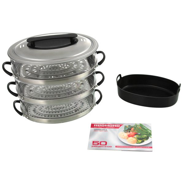 Вас, несомненно, порадует наличие в базовой комплектации пароварки RST-M1101 красочной книги на 50 рецептов. Все рецепты были специально разработаны командой поваров REDMOND с учетом особенностей работы данной модели пароварки и апробированы на ней.