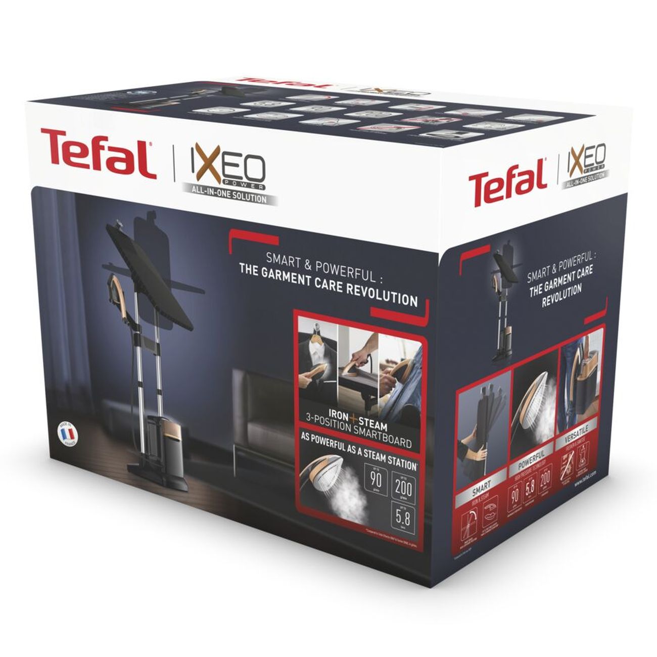 Устройство оснащено гладильной доской Smart Board, которая фиксируется в трёх положениях: горизонтально, вертикально и под углом в 30°. Даже вещи со сложным кроем, например, пиджаки или сорочки, вы сможете привести в порядок легко и быстро.