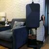 Установка помещена на автономную базу, снабжённую колёсиками, так что её перемещение не потребует больших усилий. Для насадки-утюга есть специальное крепление, для намотки сетевого шнура – крюк. При вертикальном положении доски вся конструкция не займёт много места при хранении и сможет поместиться, например, в шкафу.