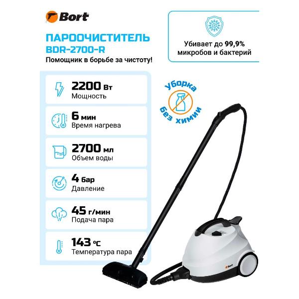 Вы можете купить Паровой очиститель Bort BDR-2700-R в магазинах М.Видео по доступной цене. Паровой очиститель Bort BDR-2700-R: подробное описание, фото и отзывы реальных покупателей, характеристики, возможность скачать инструкции и подобрать аксессуары.