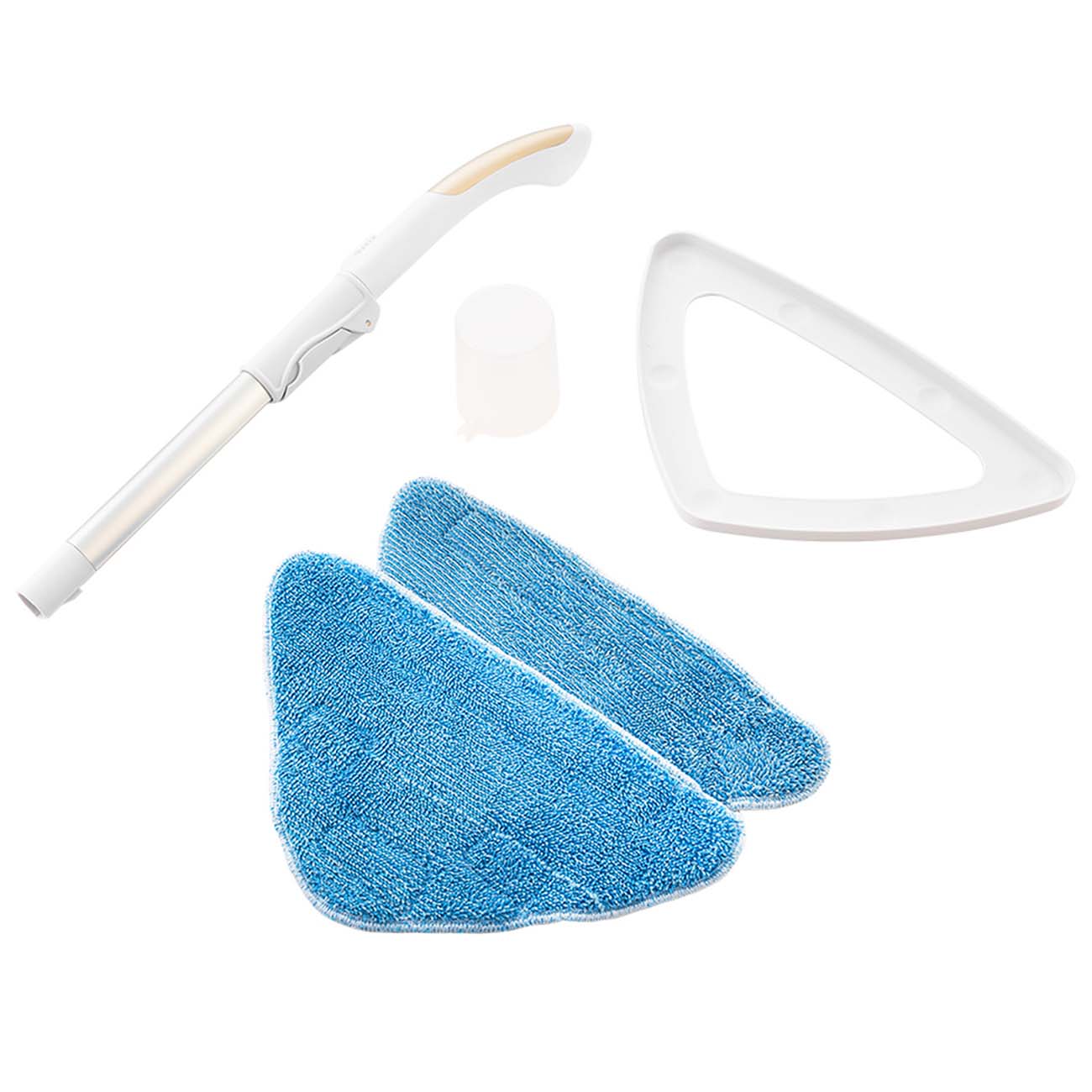 Прибор поставляется с двумя салфетками из микрофибры – к насадке они крепятся с помощью надёжных липучек. При уборке ковра беспрепятственное скольжение по нему обеспечит специальная съёмная рамка.