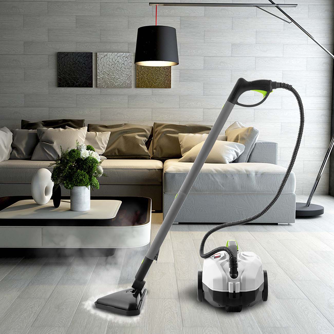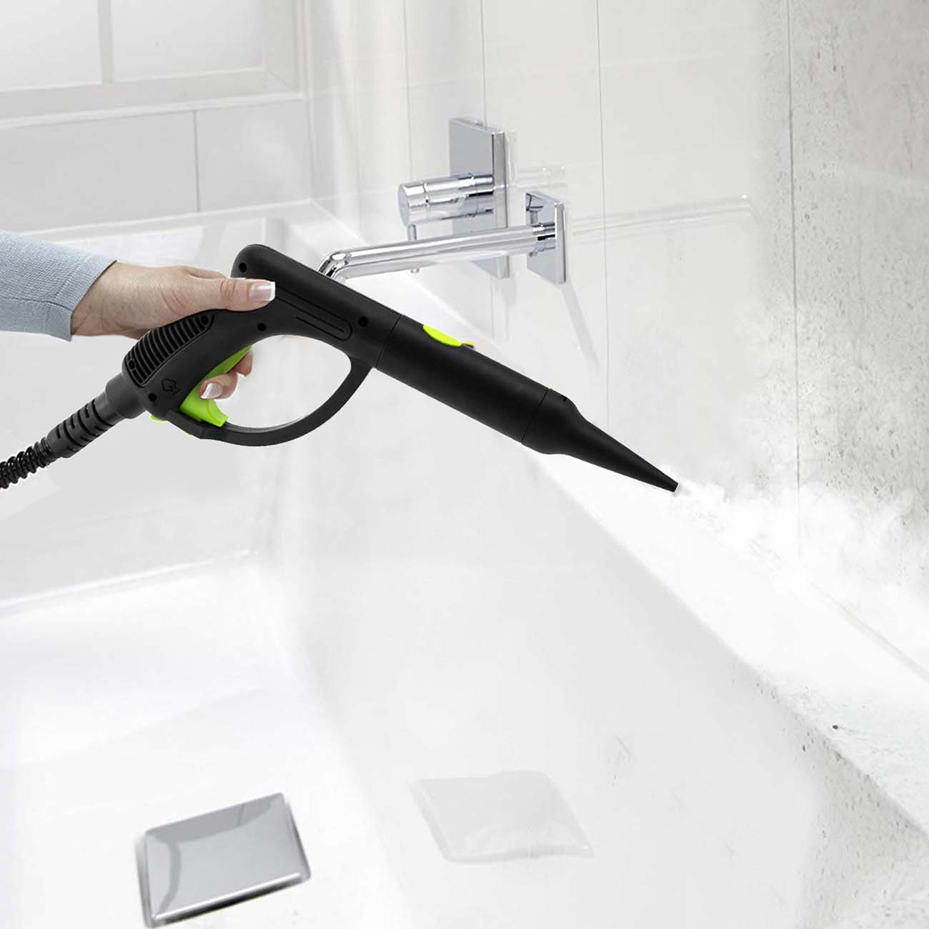 Мощная подача пара, объем резервуара для воды 1,5 литра, отличный выбор насадок для работы.