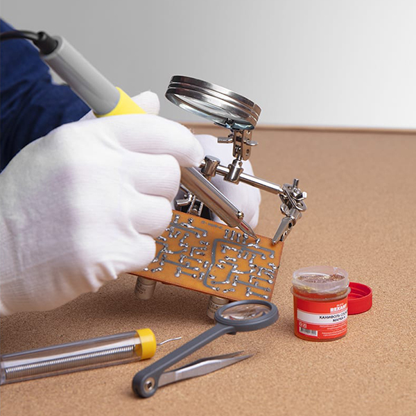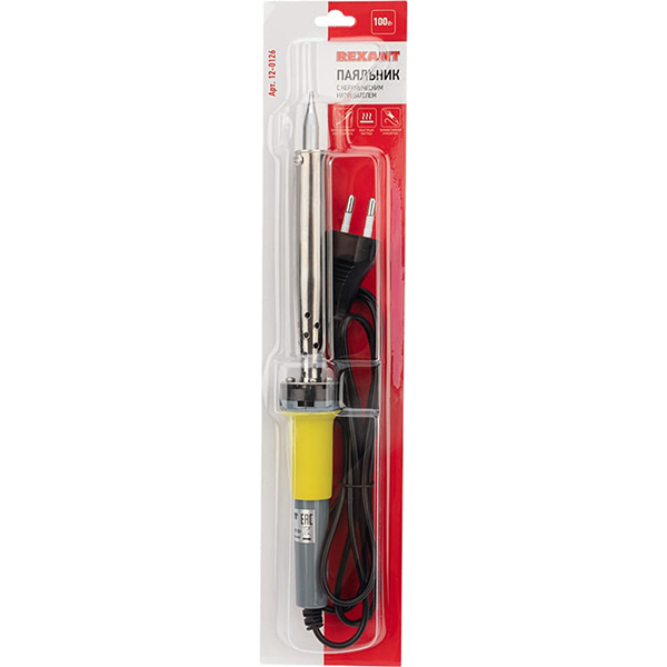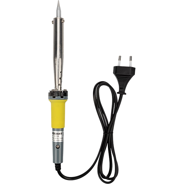 Паяльник Rexant 12-0126 серии «Мастер» предназначен для работы с радиоэлементами и подойдет как для домашнего, так и для профессионального использования в мастерских. Быструю готовность обеспечивает керамический нагревательный элемент. Жало отличается длительным сроком службы: медный сердечник покрыт электролитически осажденным железом, рабочая часть — оловом, прочая поверхность хромирована. Паяльник получает питание от электрической сети напряжением 220-240 В, мощность — 100 Вт. Длина кабеля — 1,35 м. Эргономичная ручка, сделанная из термостойкого пластика, удобно лежит в ладони, резиновая накладка предотвращает скольжение и обеспечивает надежный хват.