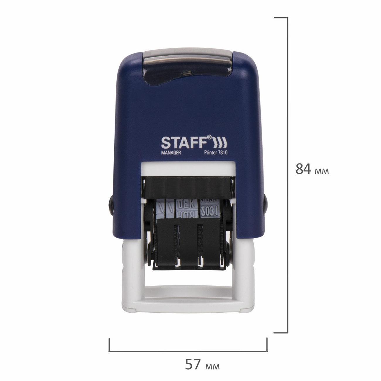 Клише штампа оставляет оттиск размером 22х4 мм синего цвета. Изменение даты осуществляется вращением колесиков. Корпус изготовлен из качественного износоустойчивого пластика. Верхняя часть корпуса выполнена в темно-синем цвете, а нижняя часть - в светло-сером. Надежные фиксаторы, располагающиеся по бокам, позволяют удерживать подвижную часть штампа в статичном положении. В специальном прозрачном окне на верхней части корпуса располагается образец текста для его идентификации в процессе использования штампа. Замена подушки не составляет труда. На механизм распространяется пожизненная гарантия. Срок годности сменной подушки составляет 6 лет (дата изготовления указана на упаковке).
