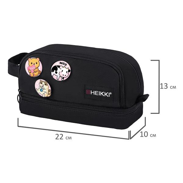 Пенал имеет оптимальный размер, 22x13х10 см, для размещения в нем не только канцелярских принадлежностей и принадлежностей для творчества, но и повседневных мелочей, аксессуаров, таким образом может выполнять роль универсальной косметички или несессера, которую можно всегда взять с собой.