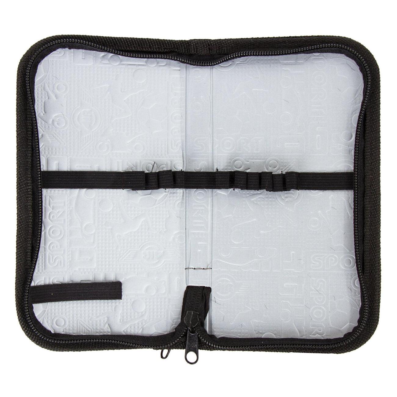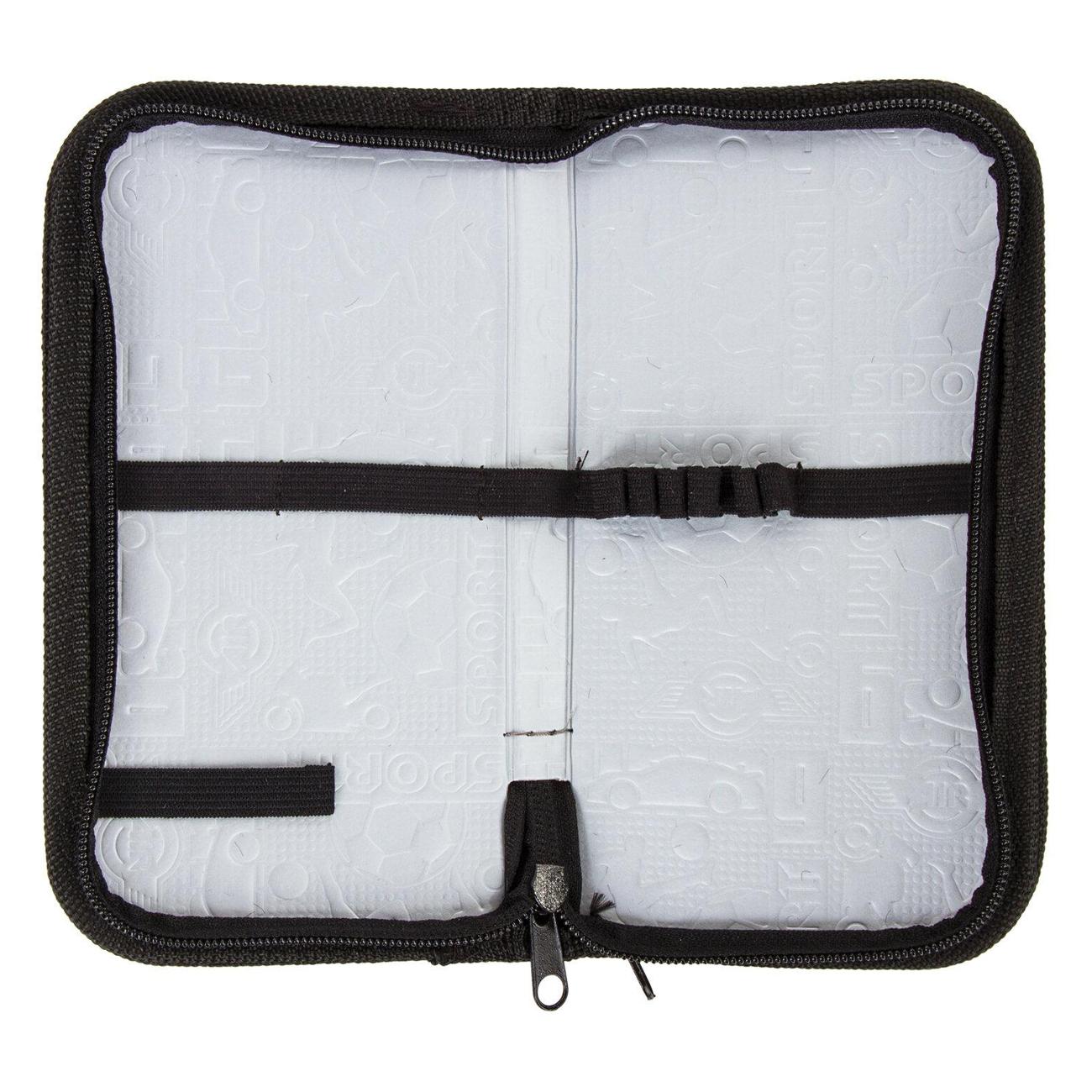 Пенал имеет 2 отделения, внутри на каждой створке имеются прочные резинки для канцелярских принадлежностей. Внутренняя часть выполнена из картона с глянцевой ламинацией с узором.
