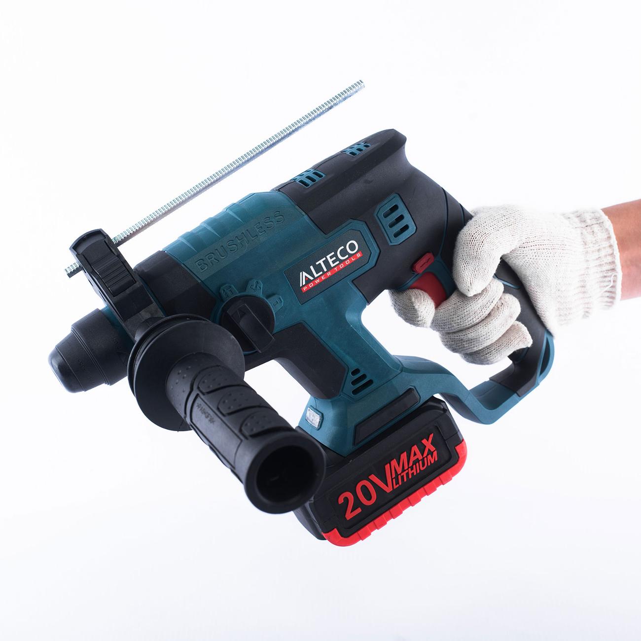 Перфоратор Alteco CRH 1820 подходит для сверления отверстий диаметром от 13 мм до 40 мм. В модели предусмотрено два режима. Энергия удара достигает 1,7 Дж. Число оборотов хода составляет 1400 в минуту.