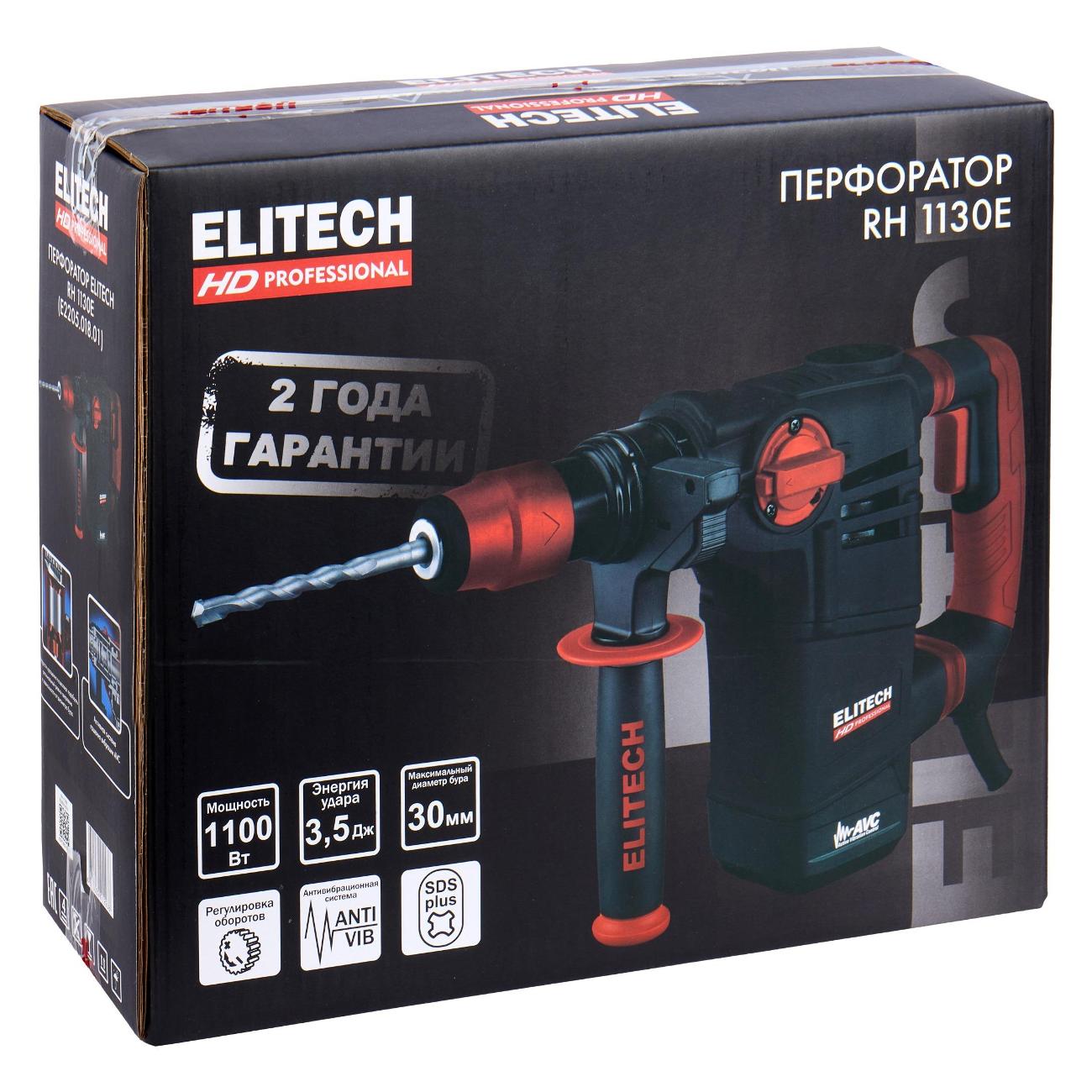 Вы можете купить Перфоратор Elitech RH 1130E (E2205.018.01) в магазинах М.Видео по доступной цене. Перфоратор Elitech RH 1130E (E2205.018.01): подробное описание, фото и отзывы реальных покупателей, характеристики, возможность скачать инструкции и подобрать аксессуары.