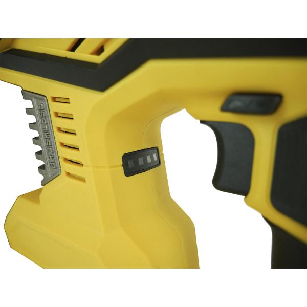 Питается аппарат от литий-ионного съемного аккумулятора. Максимальная скорость — 1400 оборотов в минуту. Допустимый диаметр по дереву составляет 2,8 см, по металлу — 1,3 см. В минуту модель способна совершать 6000 ударов.