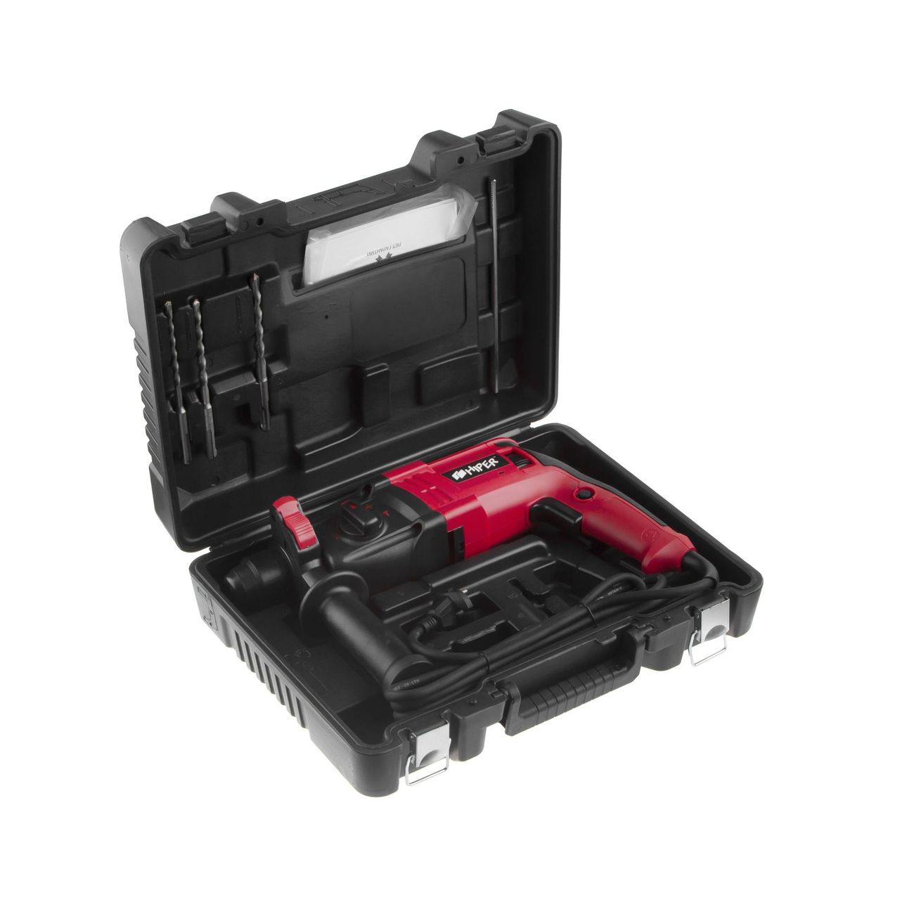 Инструмент оснащён дополнительной рукоятью, которая снизит вибрацию и поможет более точно контролировать процесс. Для хранения буров есть специальный пенал – при необходимости они всегда будут под рукой и не потеряются. В комплект входит надёжный жёсткий кейс, в нём перфоратор удобно хранить и транспортировать.