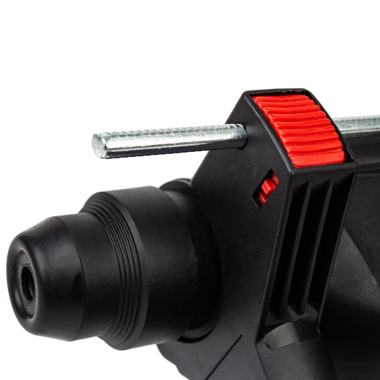 Модель оснащена быстрозажимным патроном SDS-Plus. Он позволяет использовать оснастку различных типов и менять её с минимальными затратами времени, не применяя специальный инструмент.