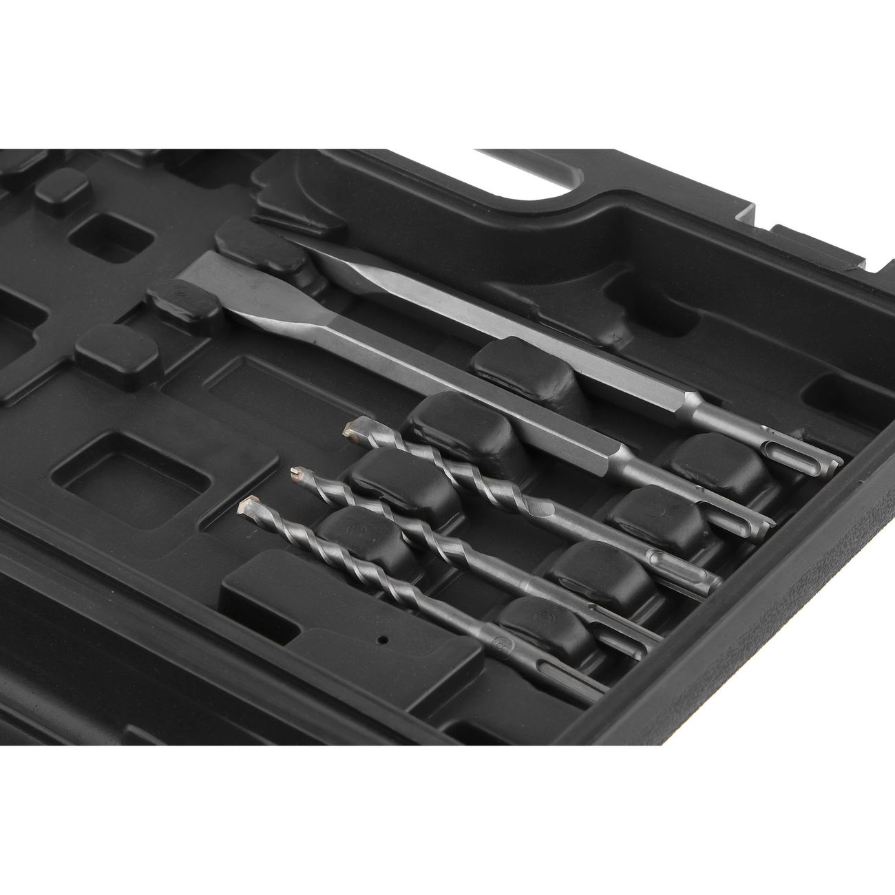 Выбор совместимой оснастки очень широк благодаря универсальному патрону SDS+. Если сверло застрянет, щёточный реверс поможет его освободить. Уверенный хват и чёткий контроль над процессом обеспечивает дополнительная рукоять. Она способствует нейтрализации вибрации и заметно упрощает работу.